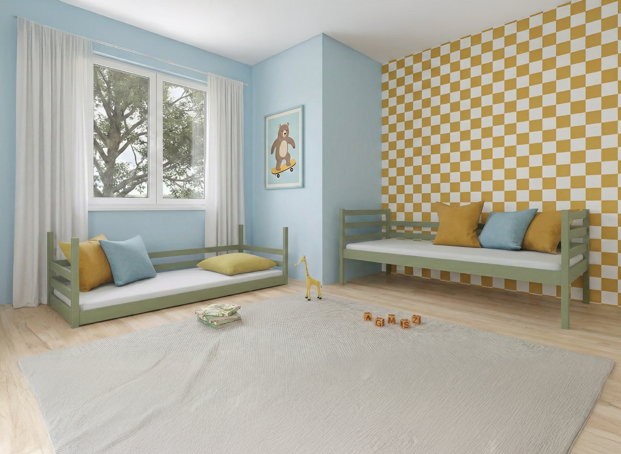 Oliwkowe łóżko piętrowe MINI – spokój rodzica, radość rodzeństwa