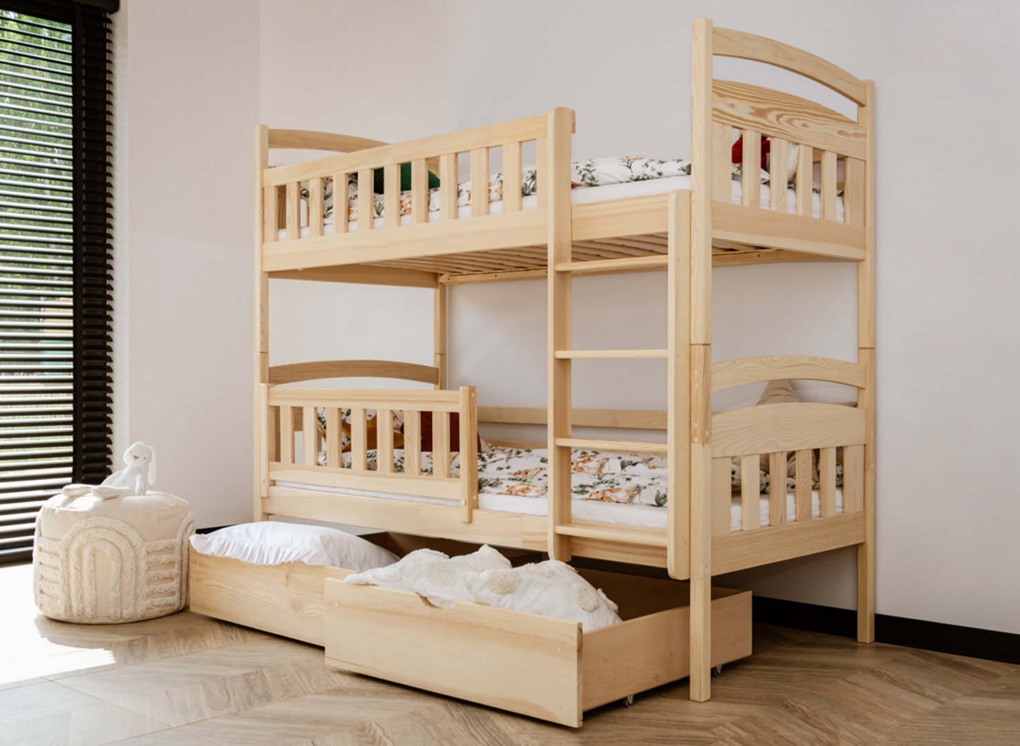 Funkcjonalne i eleganckie szuflady sosnowego łóżka piętrowego IGNAŚ