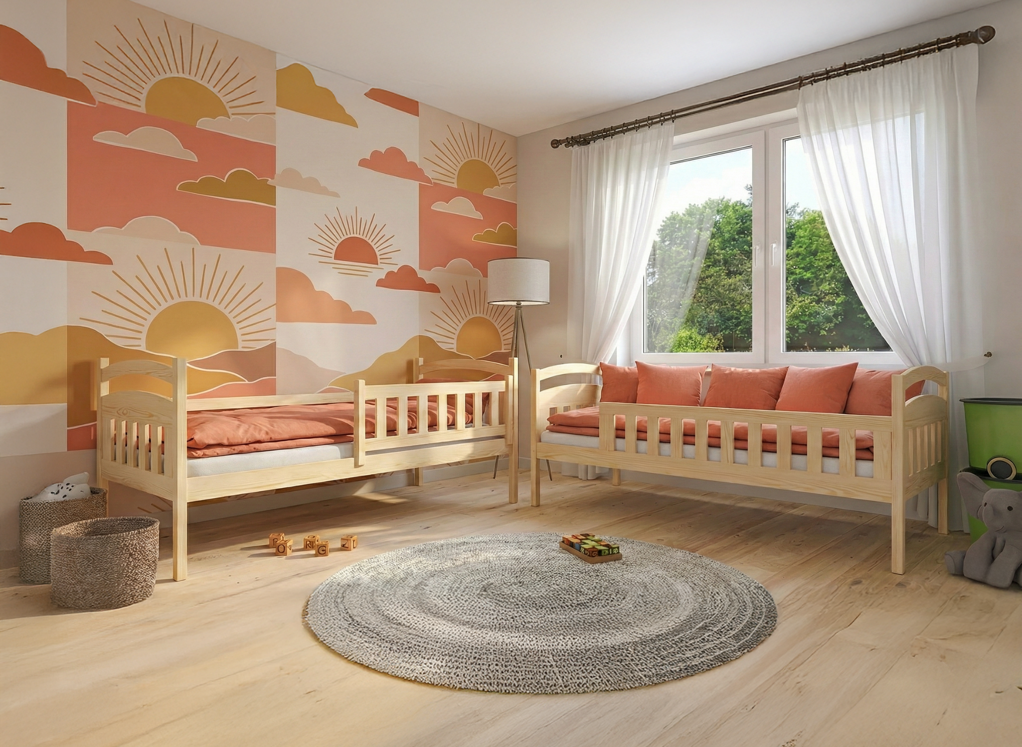 Jeżeli masz w domu rodzeństwo, które dzieli ze sobą pokój, to jesteśmy pewni, że marzą oni o piętrowym łóżku IGNAŚ. Minimalistyczny design, wygodna drabina i barierki na obydwu łóżkach sprawiają, że jest to mebel, na którym mogą spać również młodsze dzieci. Nasze piętrowe łóżko IGNAŚ, jest stworzone z dbałością o każdy, nawet najmniejszy detal. Zaokrąglone brzegi sprawiają, że Twoje dzieci nawet podczas najbardziej szalonej zabawy nie zrobi sobie krzywdy. Zarówno łóżko górne, jak i dolne wyposażone jest w drewnianą barierkę, która zabezpiecza najmłodsze dzieci przed przypadkowym wypadnięciem z łóżka podczas snu.
