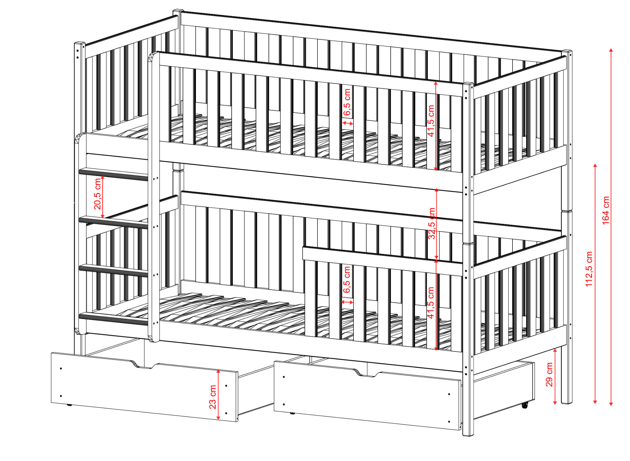 Wszystkie łóżka od Lano Meble są pozbawione ostrych kantów, aby Twoje dzieci zawsze były bezpieczne podczas snu. Łóżko piętrowe MICHALINA zostało również wyposażone w wysokie barierki ochronne, a więc nawet najbardziej aktywnym maluchom nie będzie groził upadek. Szeroka i wygodna drabinka ułatwia wspinaczkę na górne piętro. Rama łóżka jest w całości wykonana z sosnowego drewna, które cechuje się dobrą sprężystością oraz wytrzymałością i nie wymaga zaawansowanej pielęgnacji. W Lano Meble dbamy o zdrowie Twoich pociech, dlatego bez względu na to, jaki kolor łóżka wybierzesz, rama będzie pokryta wodną, antyalergiczną farbą. Łóżko piętrowe MICHALINA charakteryzuje się klasycznym wzornictwem. Łatwo dopasujesz ją do aranżacji wnętrza pokoju dziecięcego. Dla młodszych dzieci w wieku od 2 lat dobrą opcją zapewniającą wysoki poziom bezpieczeństwa jest łóżko piętrowe MICHALINA z barierką wbudowaną na stałe. Natomiast dla nieco starszych pociech lepszym rozwiązaniem może być barierka zdejmowana.