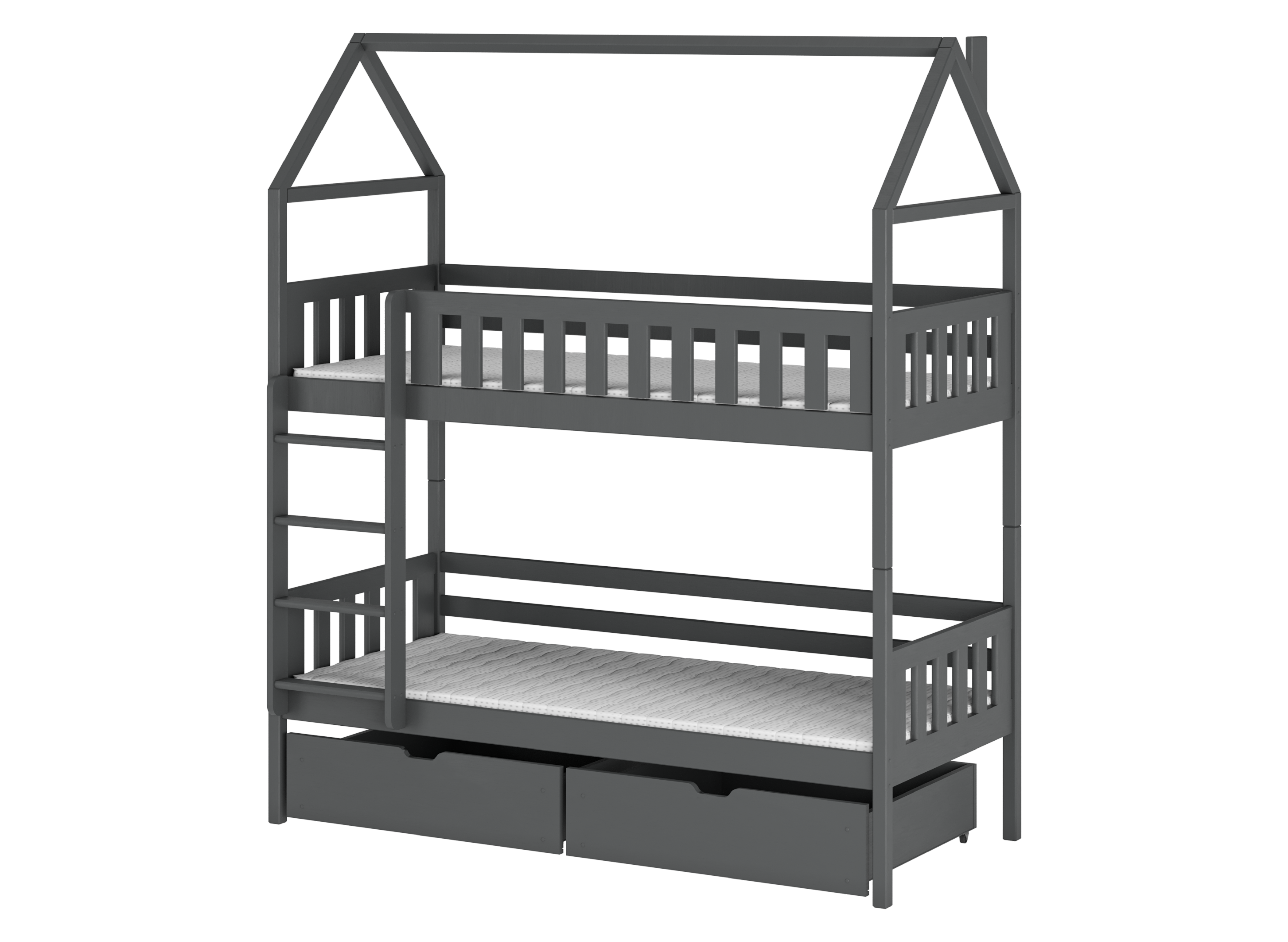 Miejsce do spokojnego spania i bezpiecznej zabawy – grafitowe łóżko piętrowe domek GAJA 80x200