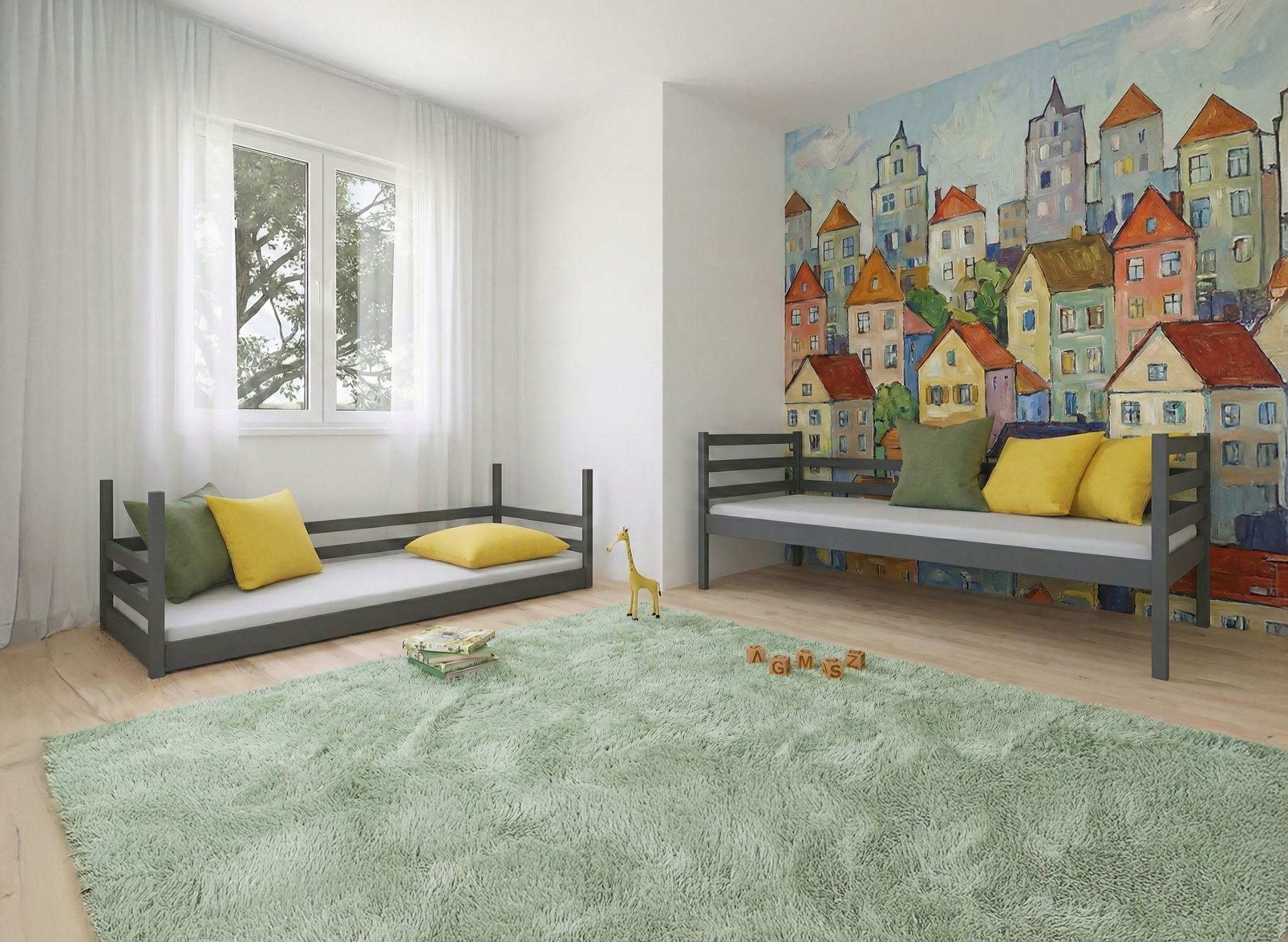 Grafitowe łóżko piętrowe MINI – czuwa nad bezpieczeństwem snu Twoich dzieci