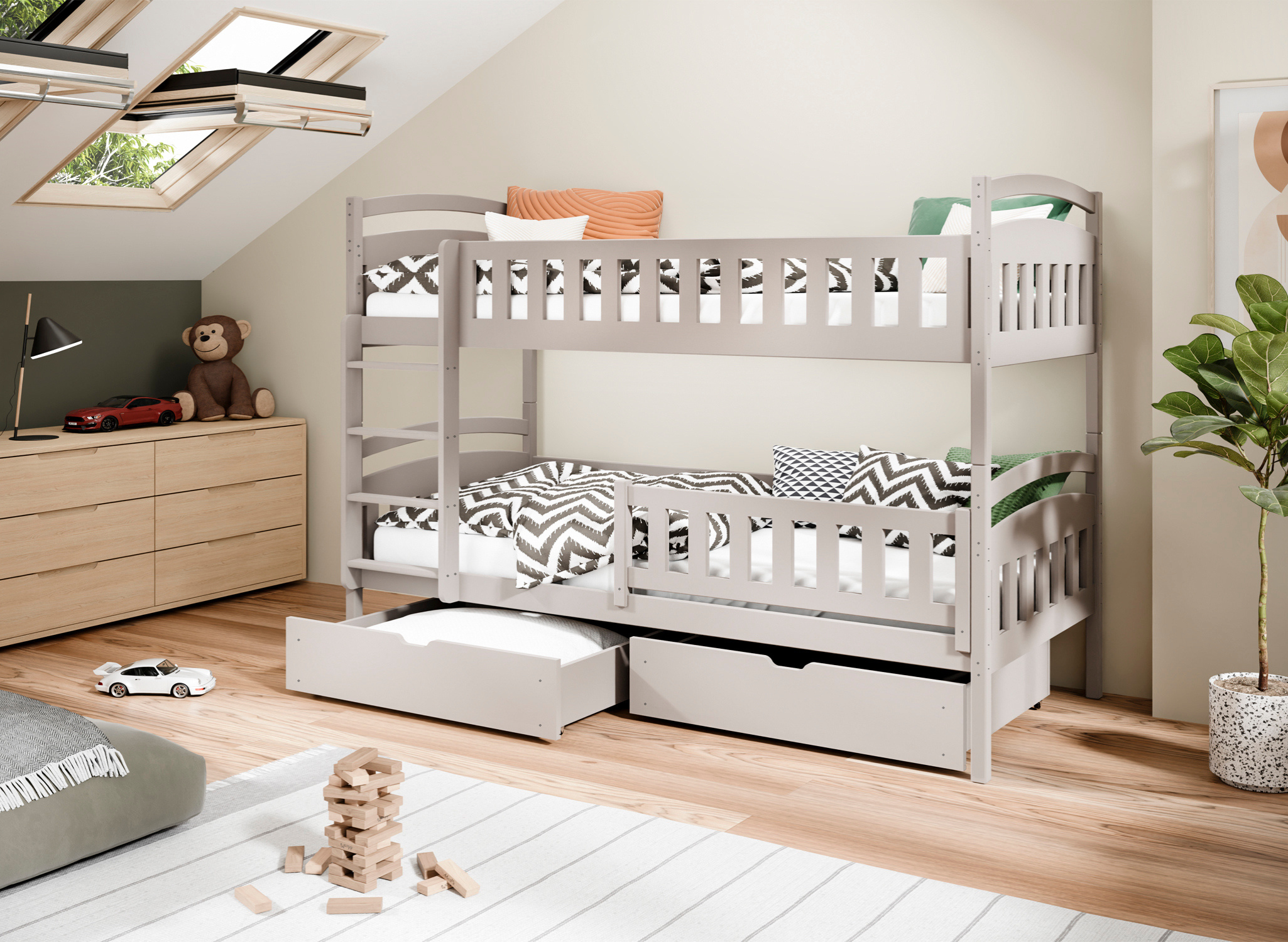 Rozwiązanie na miarę potrzeb dziecięcego pokoju – pojemne szuflady kaszmirowego łóżka piętrowego IGNAŚ