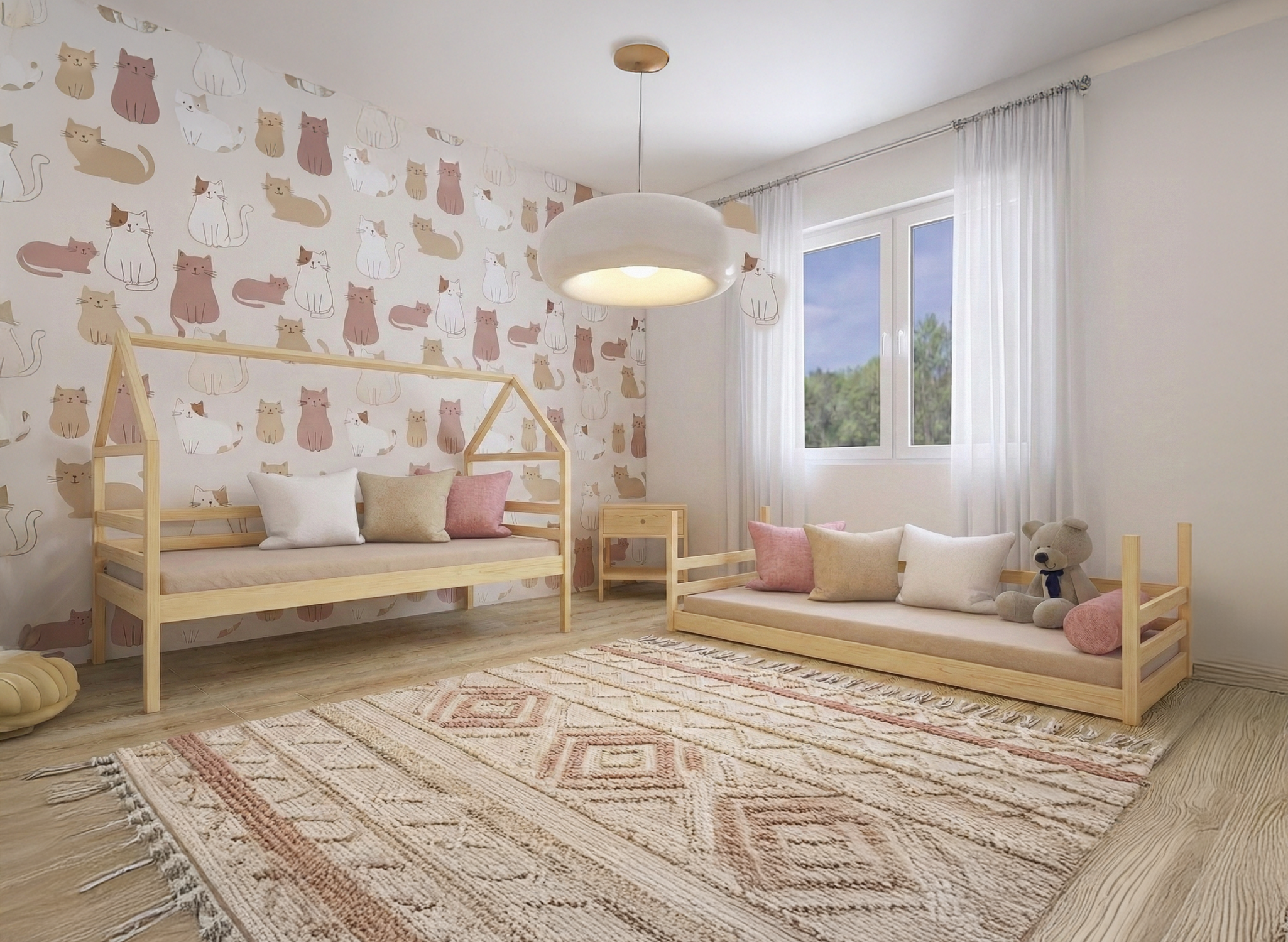 - jest praktyczny Praktyczny układ piętrowy, który pomaga uporządkowaniu pokoju.