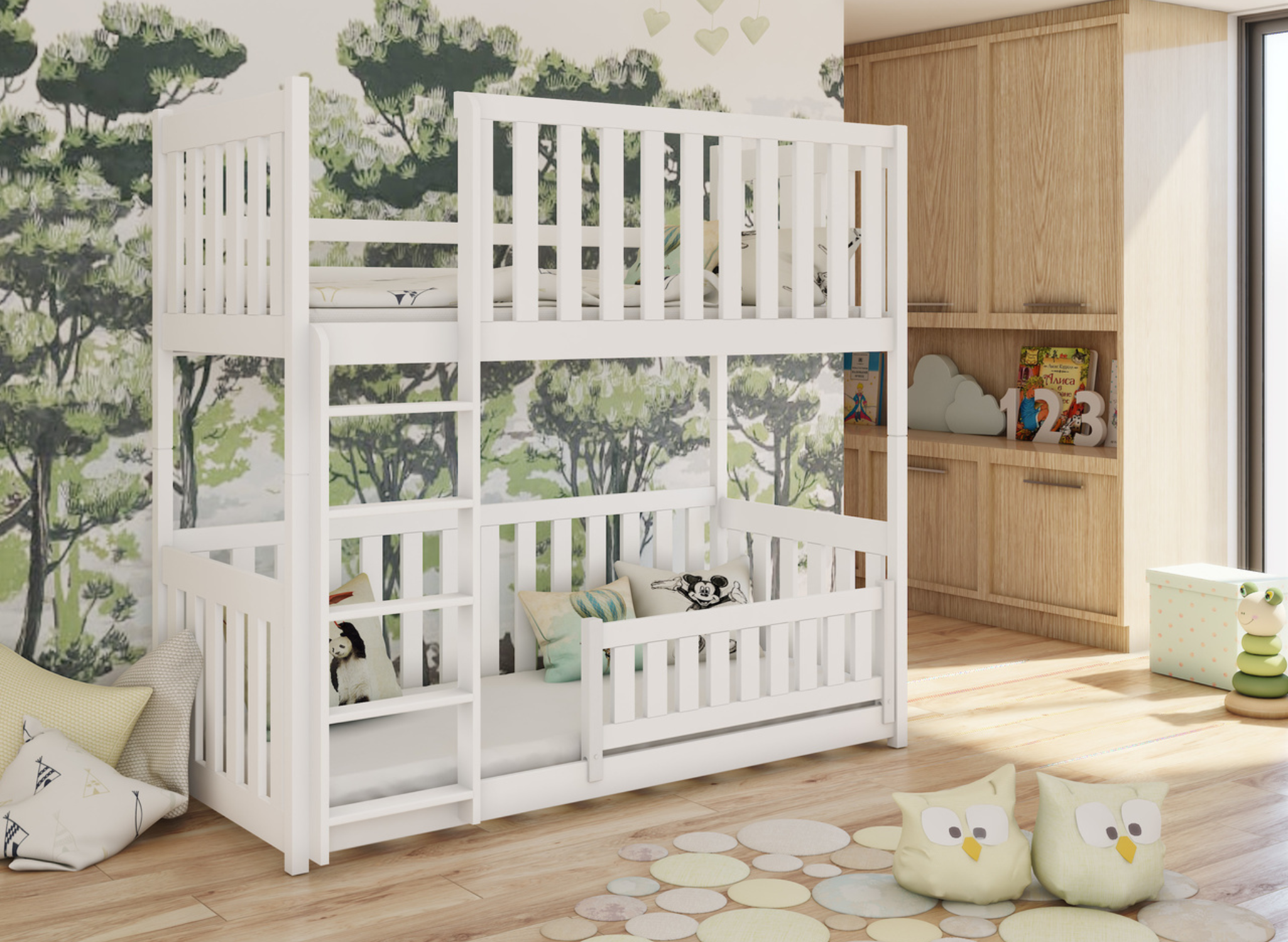 Zaprojektowanie pokoju dziecięcego to dla wielu rodziców jedno z największych wyzwań, jednak łóżko piętrowe KONRAD znacząco ułatwi Ci to zadanie. To łóżko typu kojec, które sprawdzi się w przypadku młodszych dzieci. Jego klasyczna konstrukcja idealnie pasuje do wszystkich rodzajów wnętrz. Rama łóżka piętrowego KONRAD została w pełni wykonana z drewna sosnowego, którego trwałość zwiększa antyalergiczna farba wodna. W Lano Meble dbamy o bezpieczeństwo Twoich dzieci, dlatego wszystkie nasze łóżka piętrowe KONRAD są produkowane z zachowaniem najwyższych standardów.