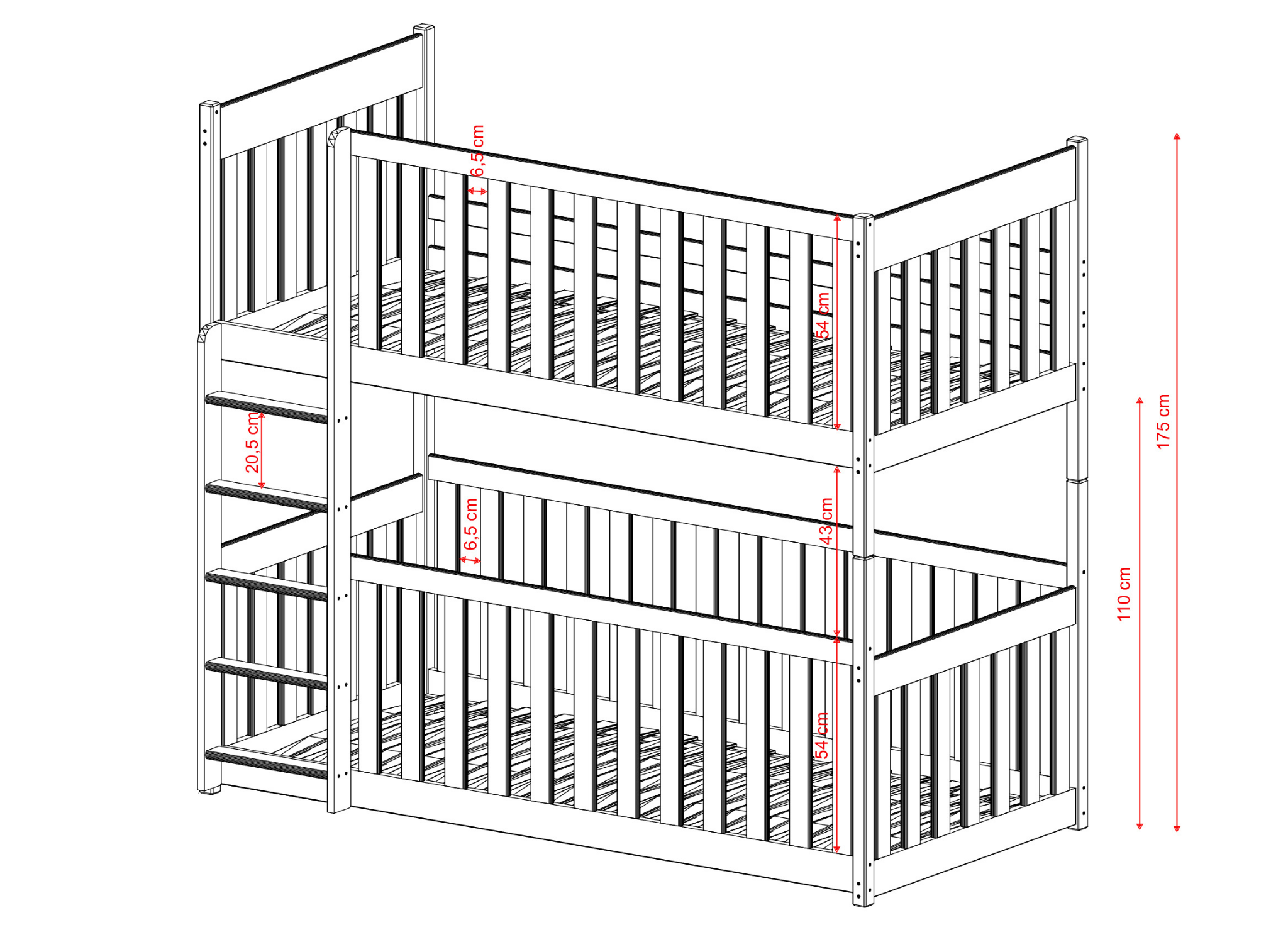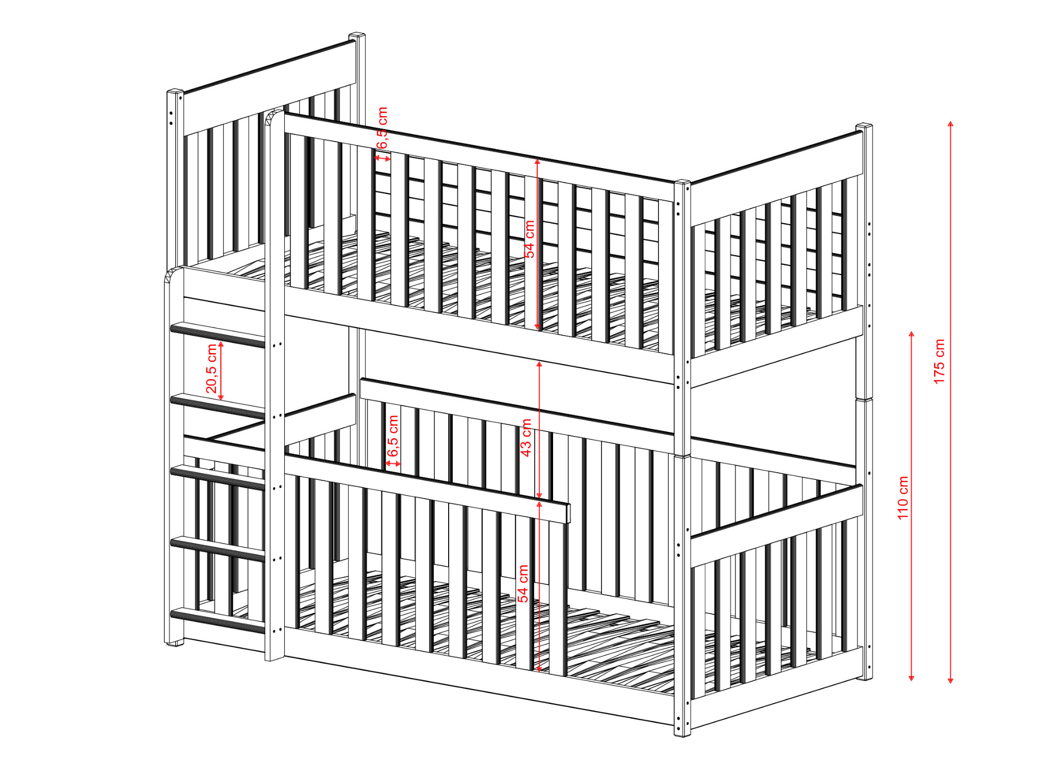 Łóżko piętrowe KONRAD jest wyjątkowe i pomoże Ci zbudować niepowtarzalny klimat pokoju dziecięcego. Wysokie barierki poza bezpieczeństwem podczas snu, mogą stanowić świetną przestrzeń dekoracyjną. Drewniane barierki łóżka KONRAD możesz ozdobić światełkami lub papierowymi wycinankami Twoich szkrabów. W tak urządzonym pokoju dziecięcym Twoje dzieci będą czuć się swobodnie, a to wszystko dzięki piętrowemu łóżku dziecięcemu KONRAD. Jedną z kluczowych cech łóżka piętrowego KONRAD są wysokie barierki ochronne. Do wyboru masz kilka rodzajów: barierki pełne, zdejmowane, ¾ lub ½. Bez względu na to, którą z opcji wybierzesz, zapewnią one Twojemu dziecku bezpieczeństwo w trakcie snu. W przypadku nieco starszych maluchów możesz również zdecydować się na łóżko dziecięce KONRAD bez barierek. W zestawie z meblem otrzymujesz także wygodną drabinkę z szerokimi szczebelkami, która ułatwi maluchom wdrapywanie się na wyższy pokład. W trakcie montażu łóżka piętrowego KONRAD możesz ustalić, po której ze stron będzie znajdowało się wejście.