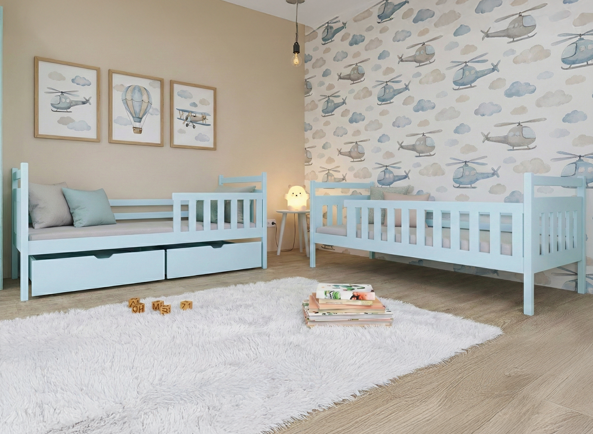 Łóżko piętrowe MONIKA to doskonałe rozwiązania nie tylko w małych pomieszczeniach, ale też w każdym pokoju dziecięcym, w którym mieszka rodzeństwo. Dlaczego? Takie łóżko pobudza wyobraźnię i wspomaga kreatywność. Spójrz też na praktyczną stronę łóżka dla rodzeństwa MONIKA. Obie części możesz rozstawić, tworząc w ten sposób dwie niezależne od siebie strefy do spania. Zamawiając nasze łóżko piętrowe MONIKA, dajemy Ci dużo swobody. Możesz spersonalizować mebel, dzięki czemu dopasujesz go do potrzeb swoich dzieci. To Ty decydujesz o tym, czy przestrzeń pod łóżkiem ma być wykończona dwiema szufladami. Na etapie zamawiania podejmuje również decyzję, czy barierki w łóżku piętrowym MONIKA mają być zamontowane na stałe, czy mają być zdejmowane.