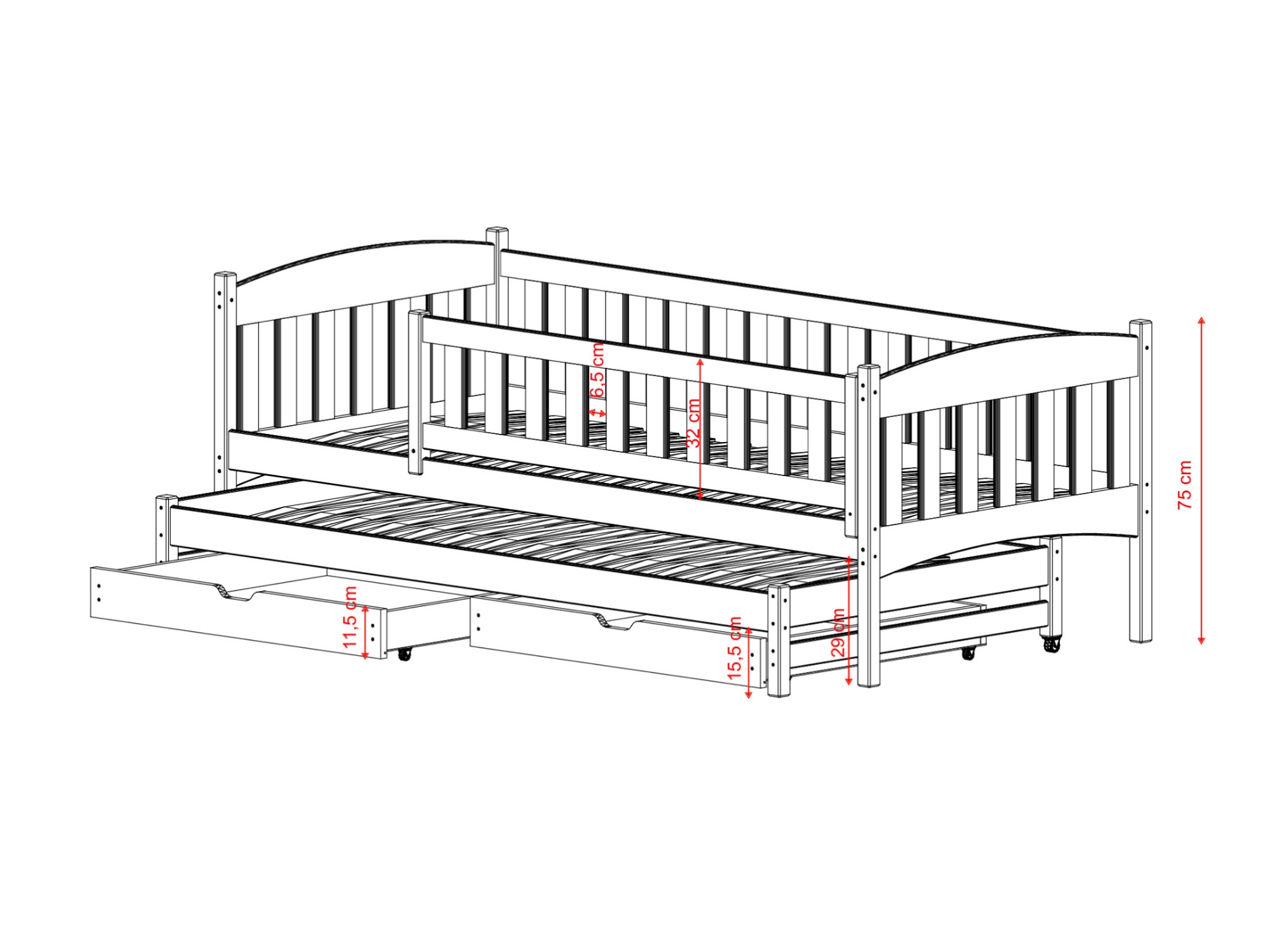 | Wysokość łóżka | 75 cm |