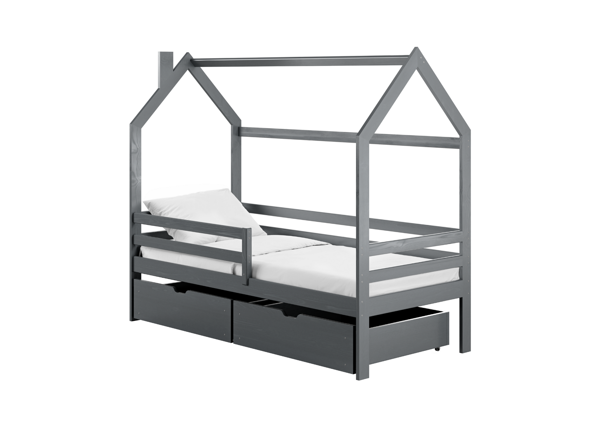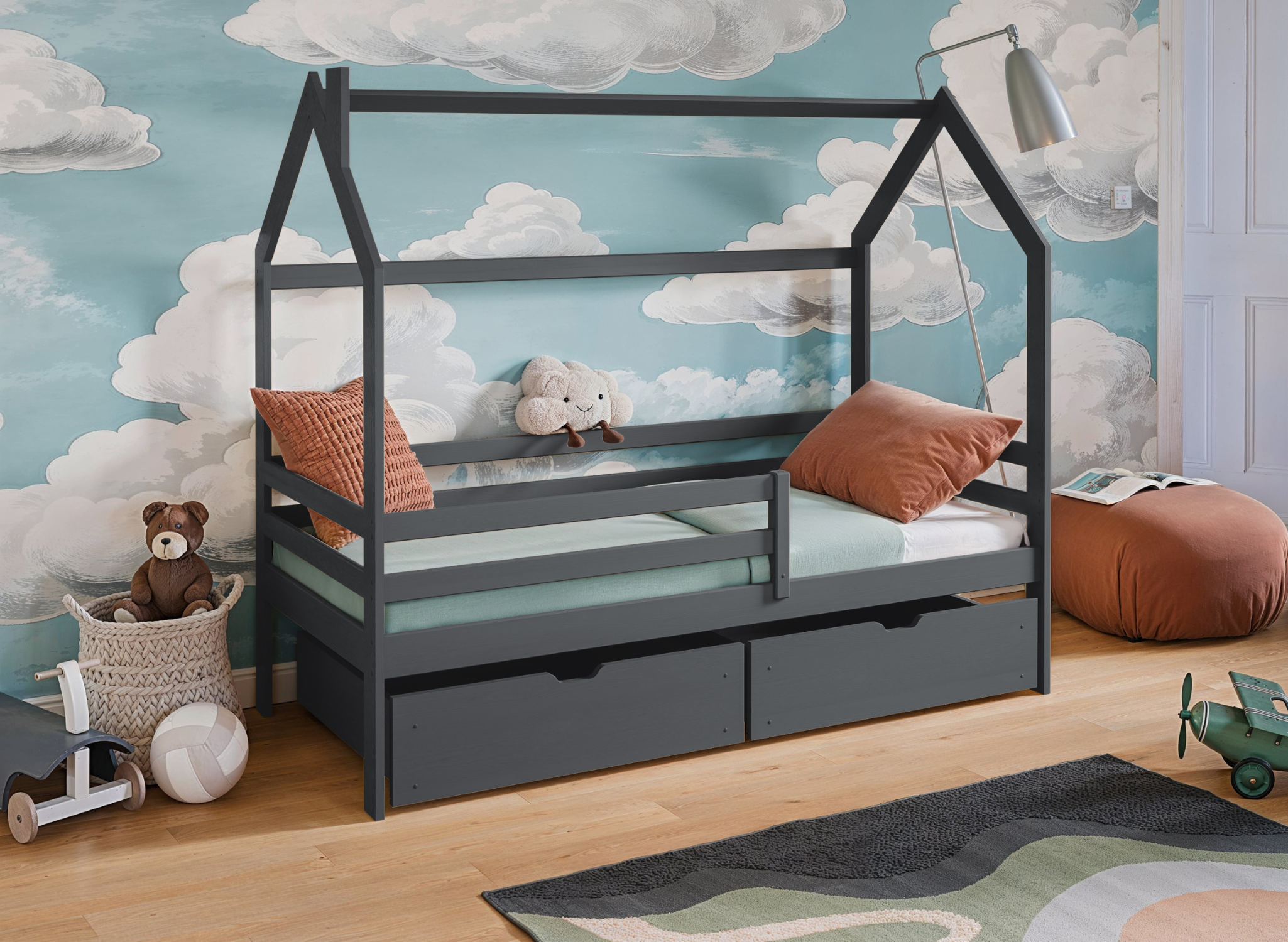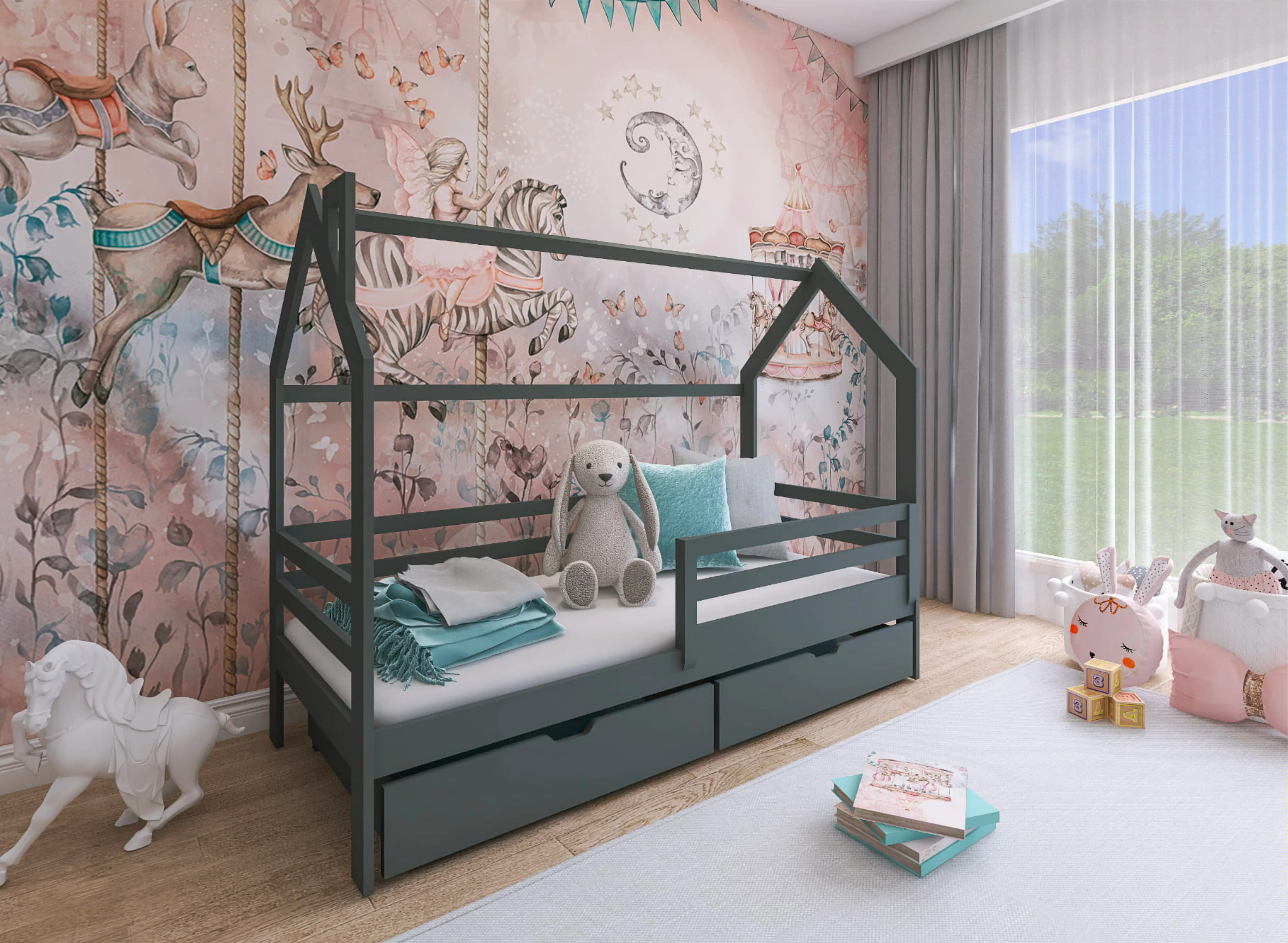 Wspieraj rozwój swojego dziecka przez dobry sen w grafitowym łóżku dziecięcym typu domek LILA 90x200