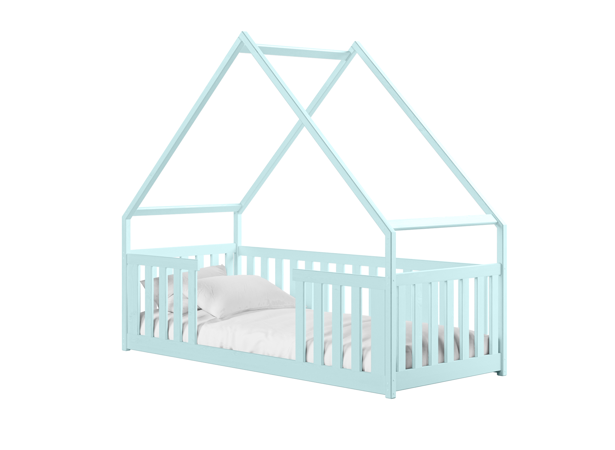 BEE 80x200 niebieskie łóżko montessori podłogowe dziecięce domek Lano Meble