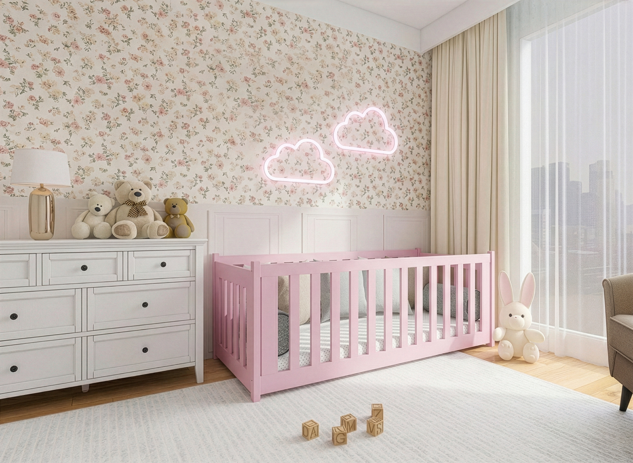 CONCEPT 90x190 różowe łóżko montessori podłogowe dziecięce kojec Lano Meble