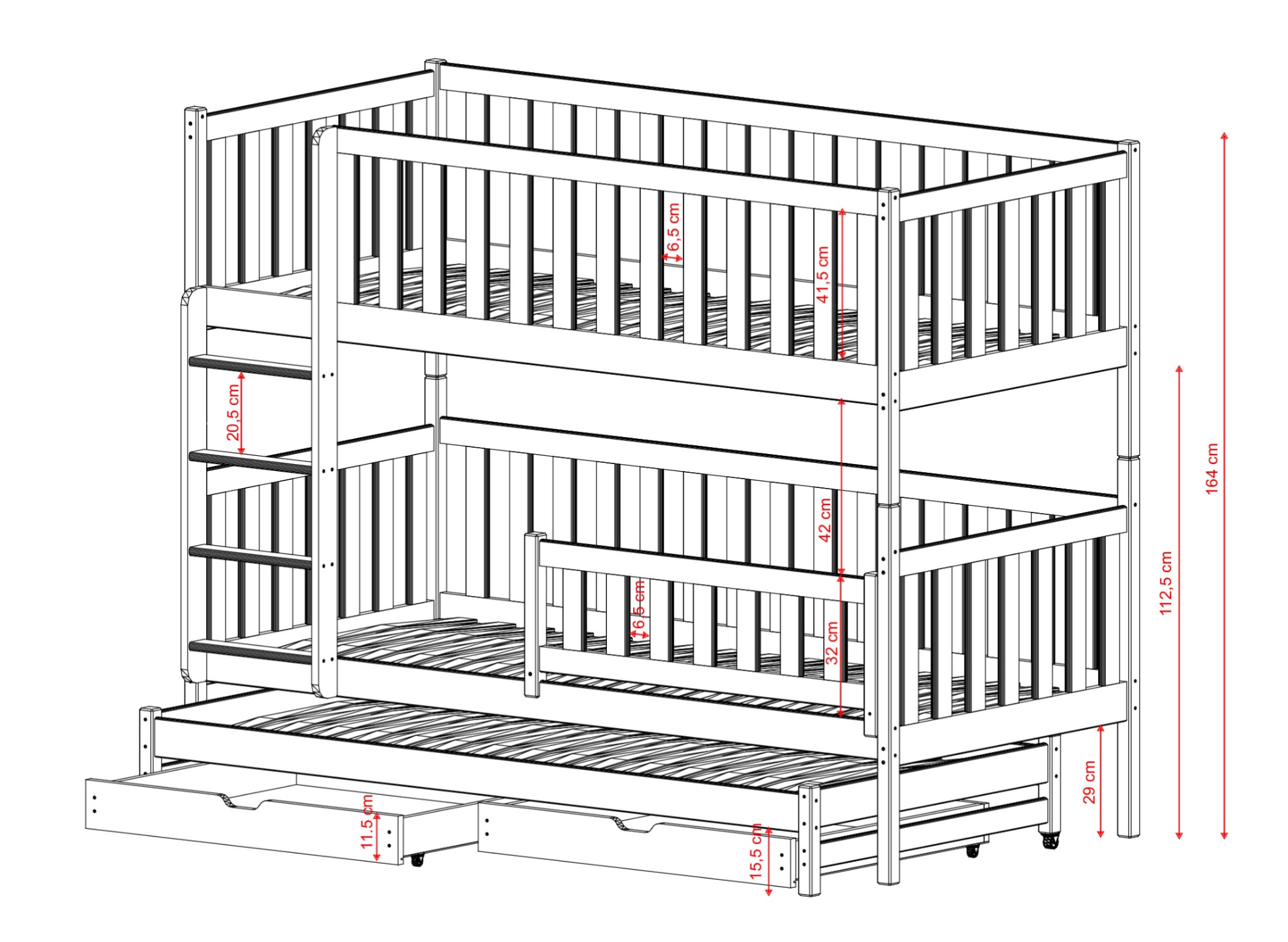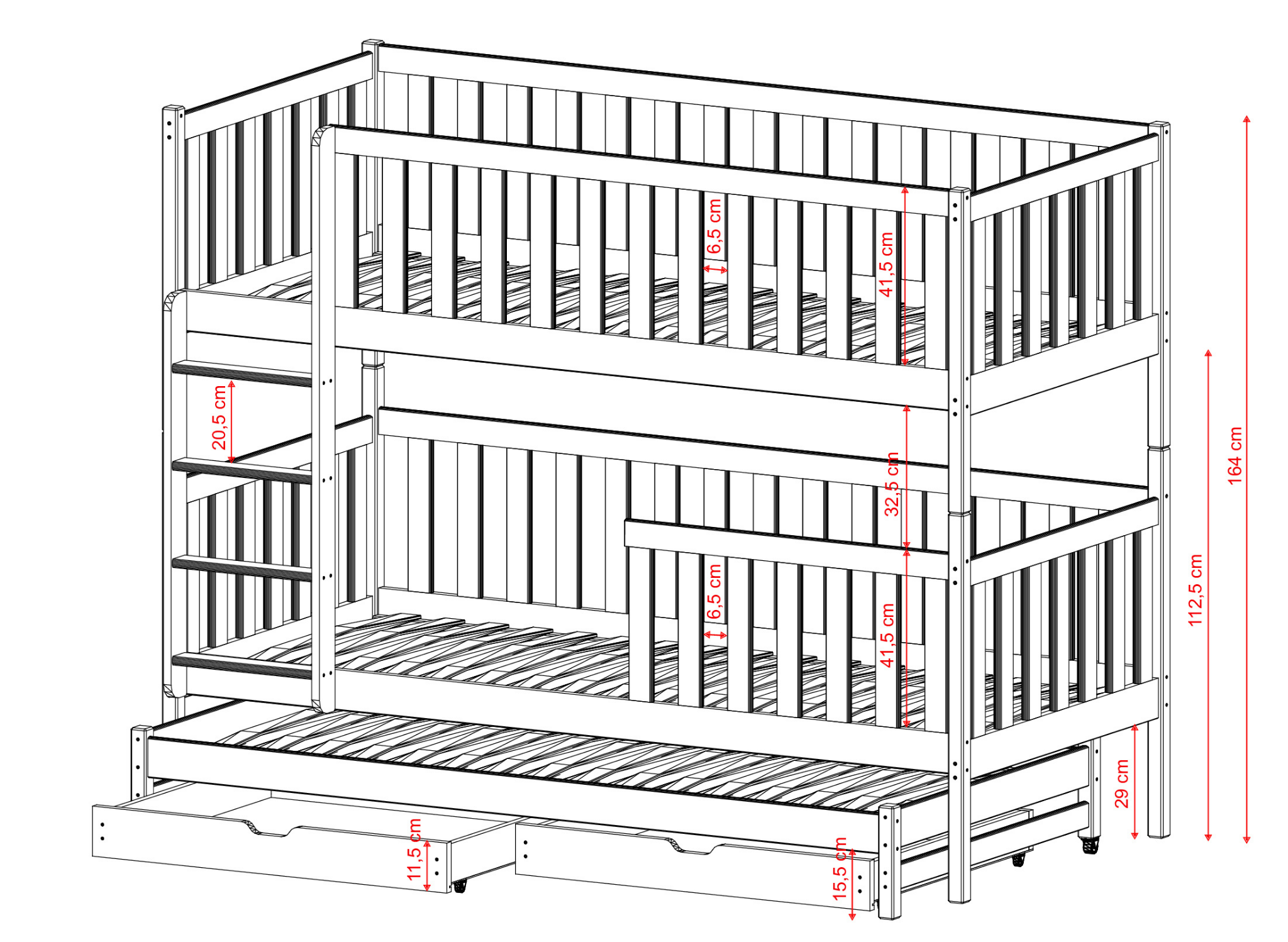 | Wysokość łóżka | 164 cm |