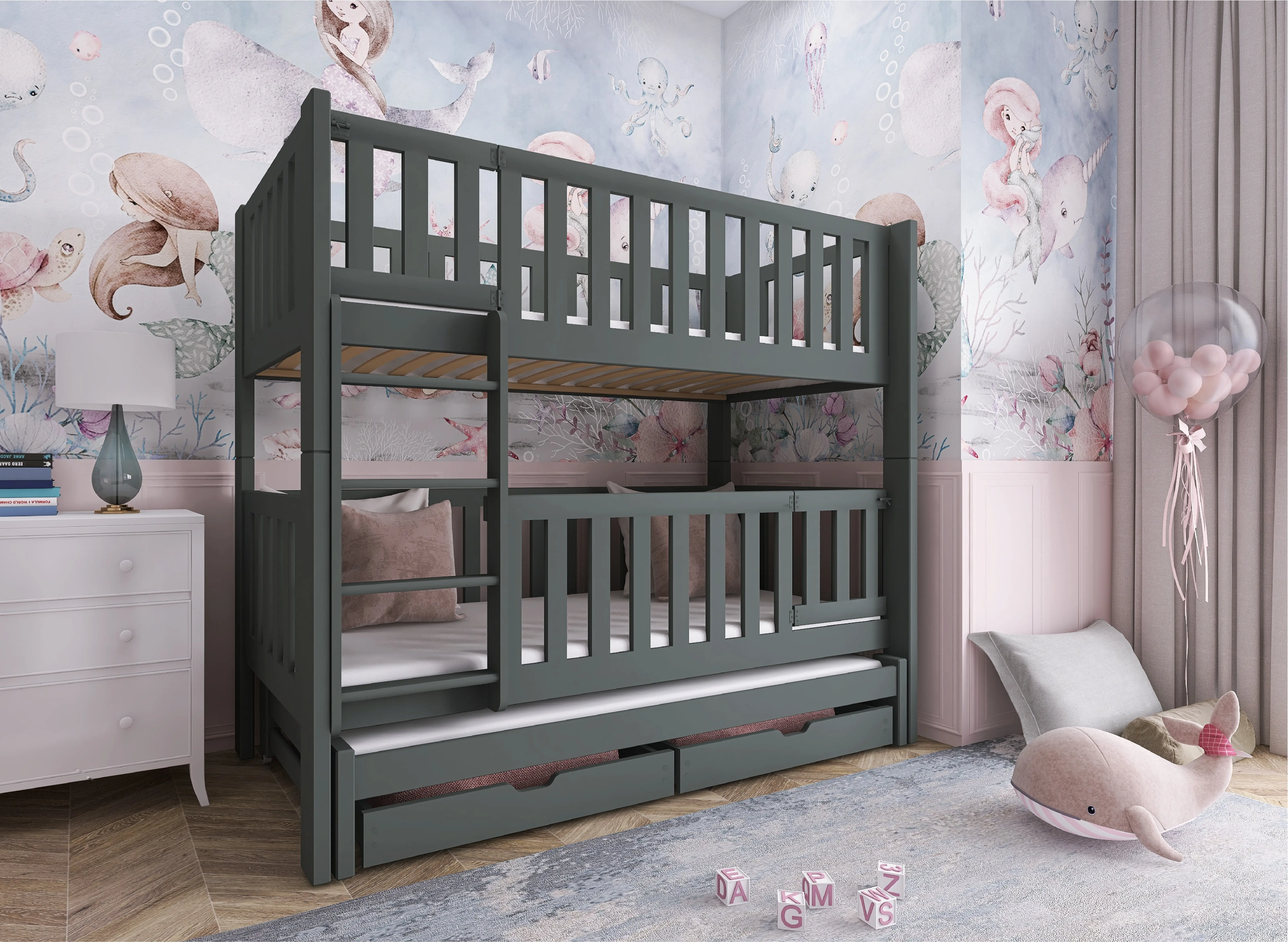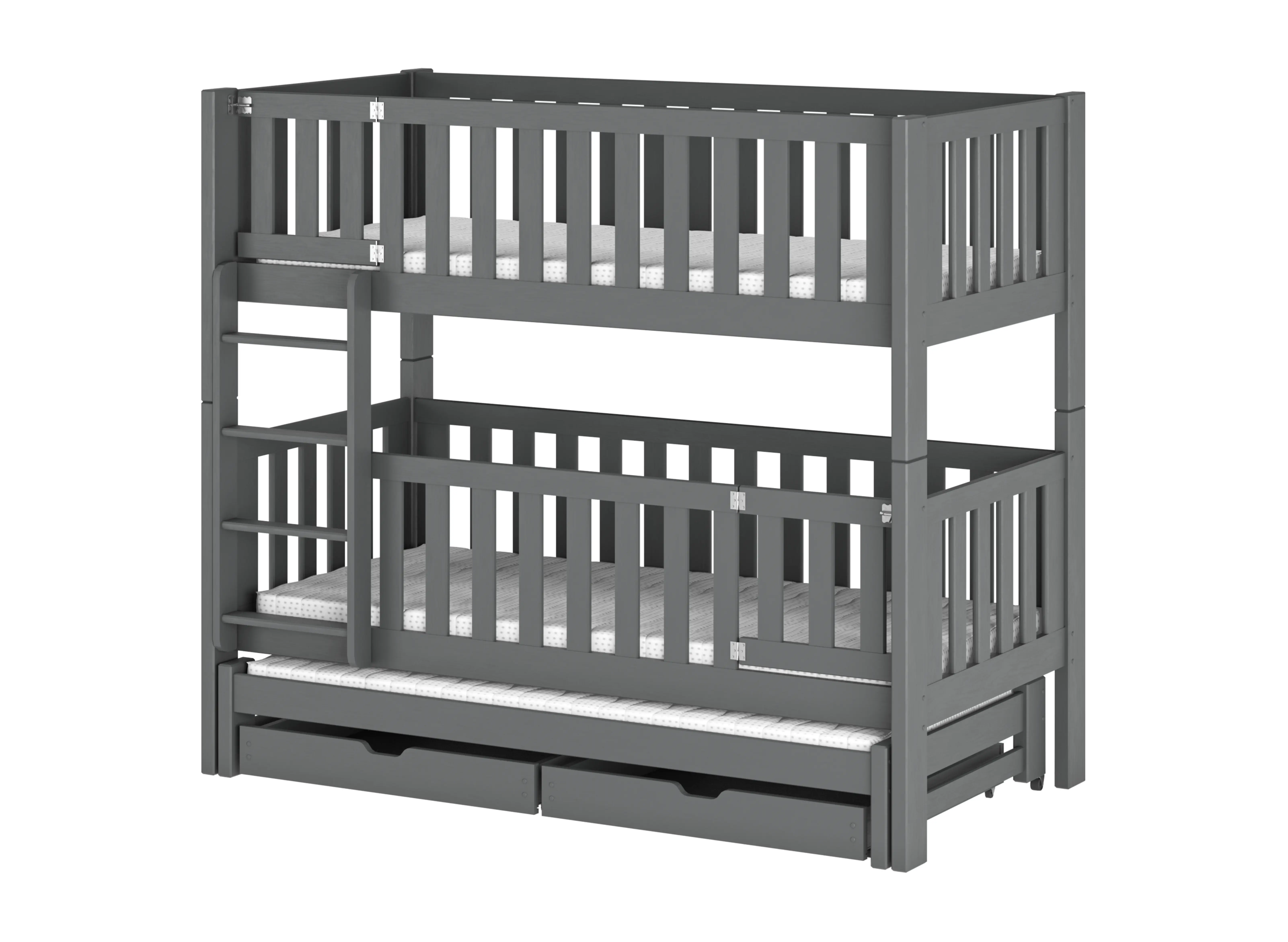 Grafitowe łóżko piętrowe AGATHA 80x180 – niezawodna i stabilna konstrukcja
