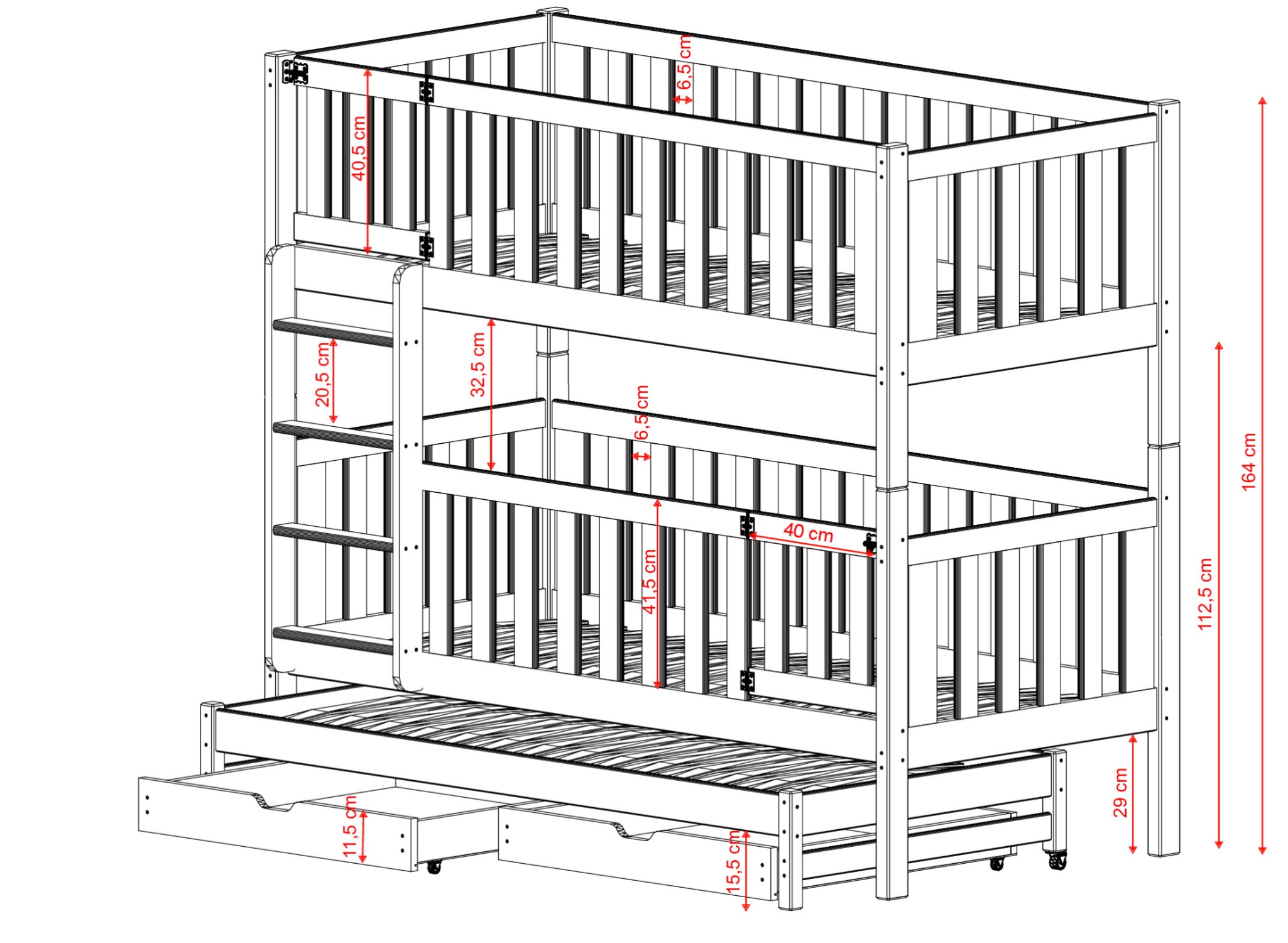 | Rodzaj łóżka | Łóżka trzyosobowe piętrowe |