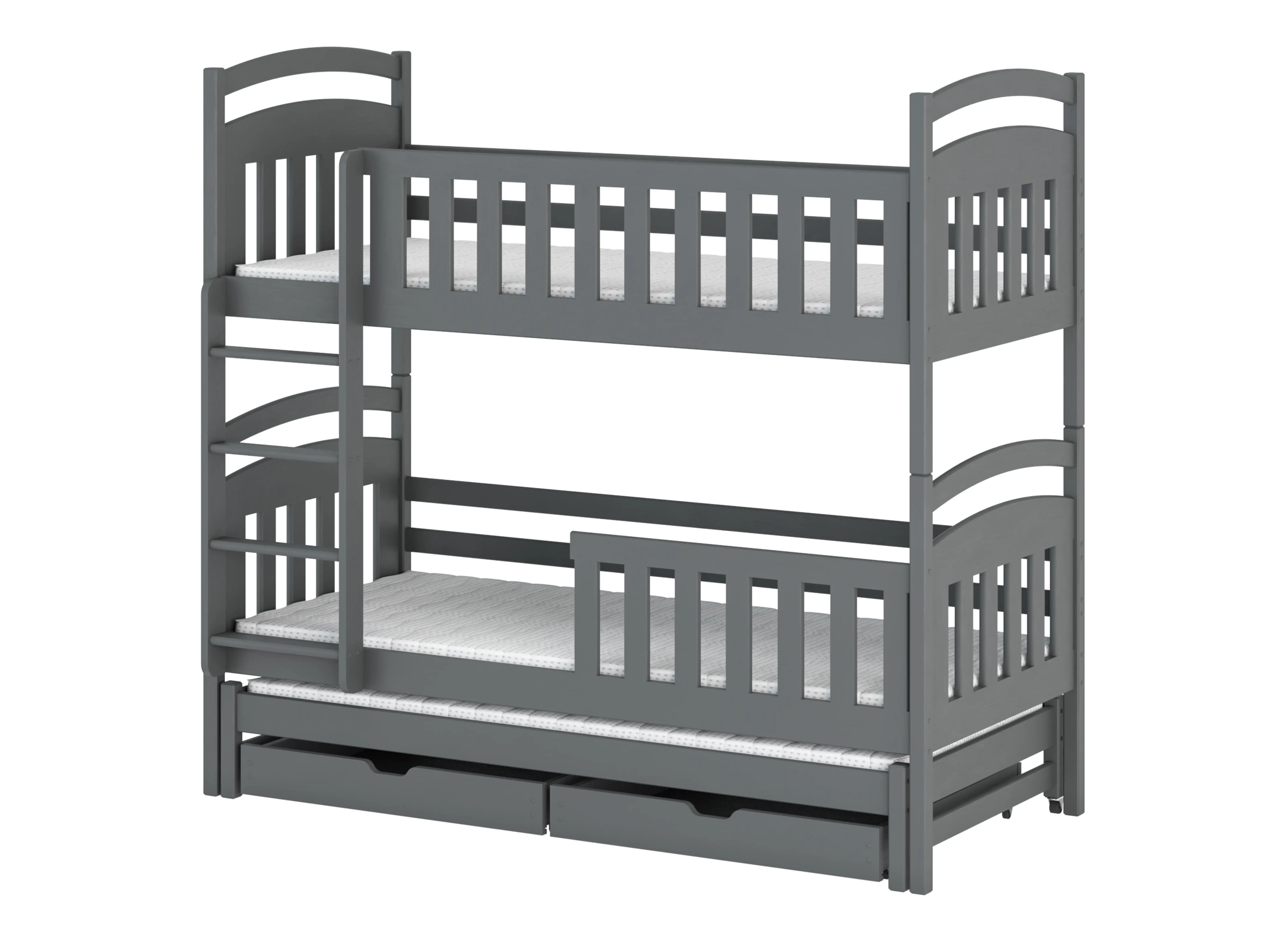 Drewniane grafitowe łóżko piętrowe VIKI – bezpieczne nawet dla najmłodszych
