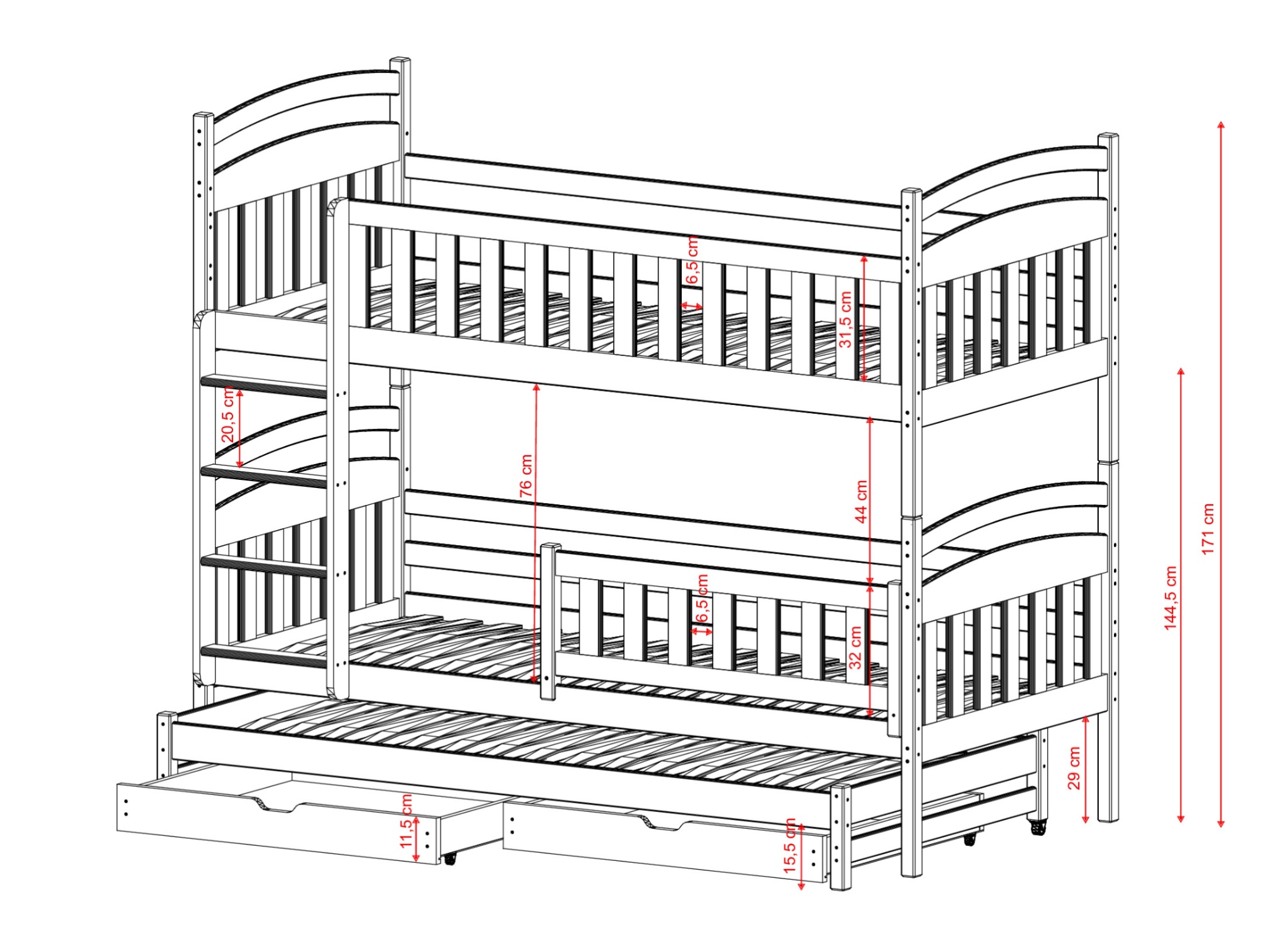 | Rodzaj | łóżko piętrowe z dostawką |