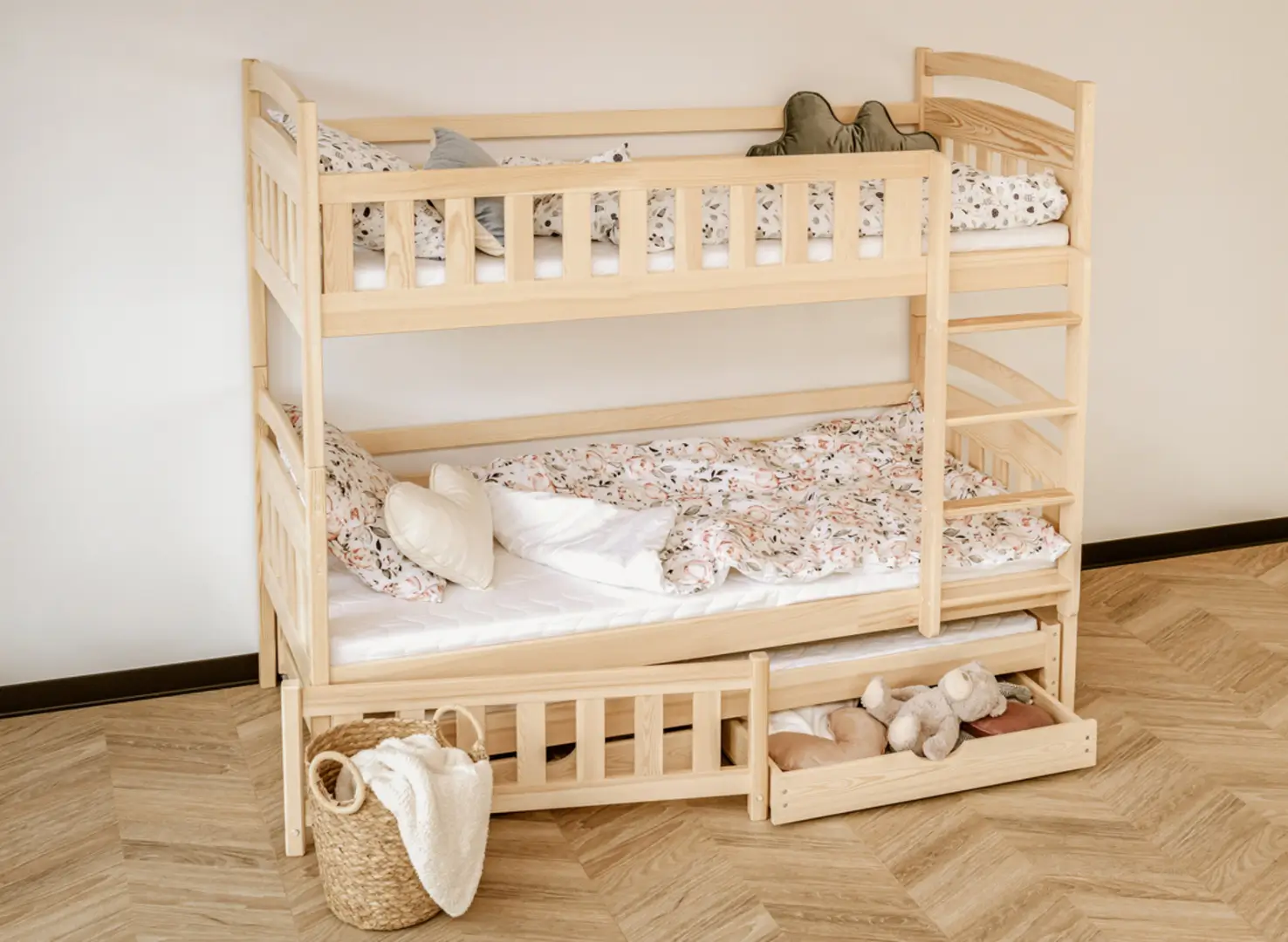 Sprawdź, jak sosnowe łóżko piętrowe BLANKA 80x200 idealnie wpasowuje się w wystrój dziecięcej sypialni