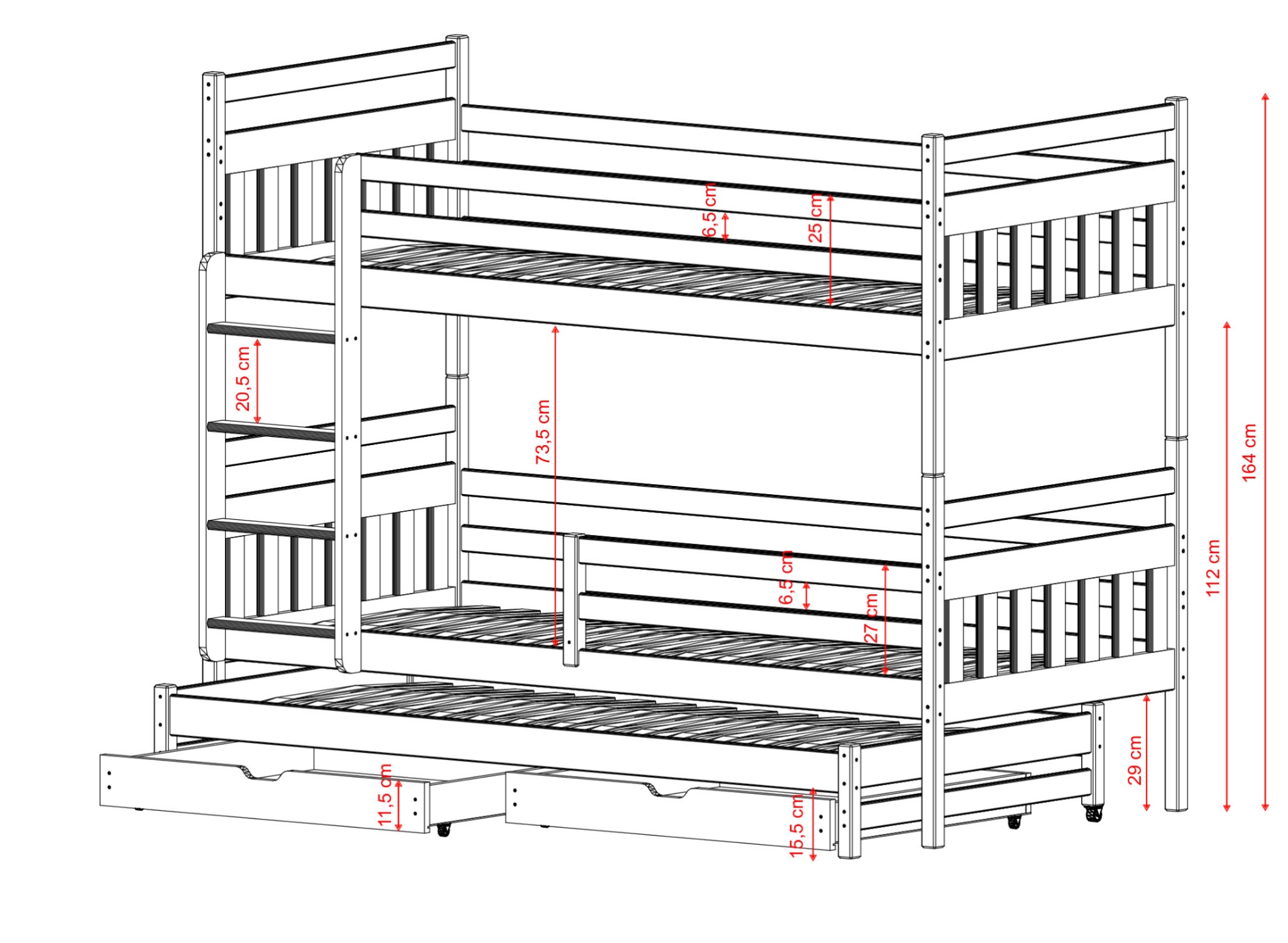 | Wysokość łóżka | 164 cm |