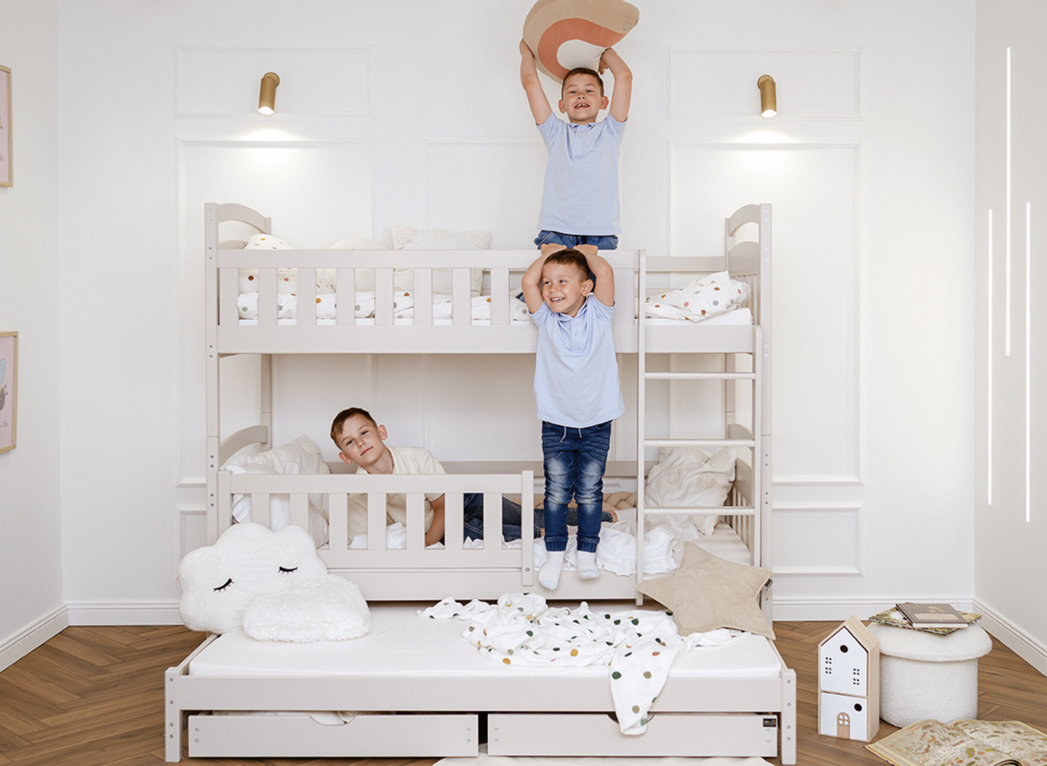 Nocowanie? Nieplanowane odwiedziny? Z kaszmirowym łóżkiem piętrowym BLANKA od Lano Meble zawsze znajdziesz dodatkowe miejsce dla najmniejszych gości