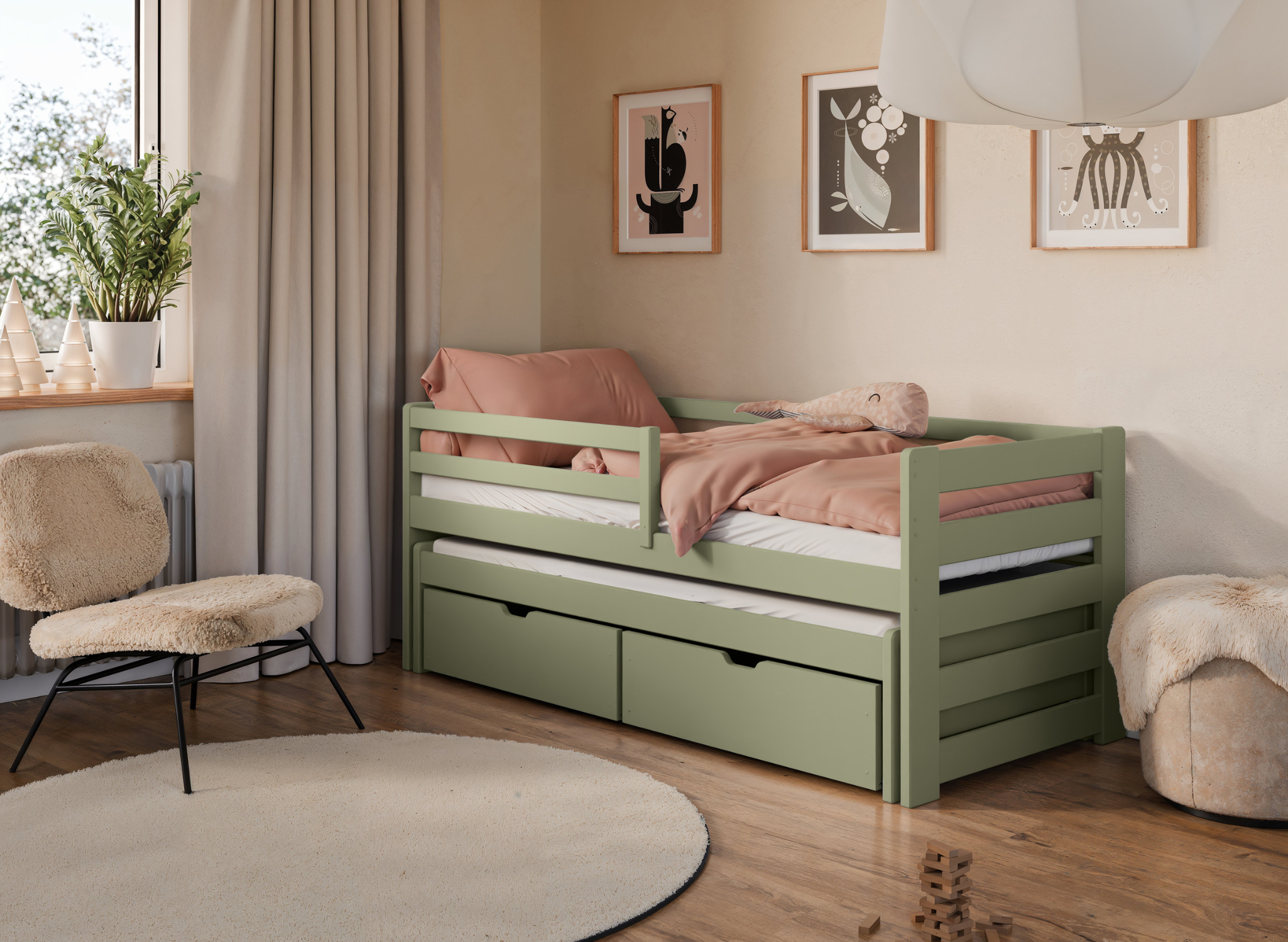 Dopasuj oliwkowe łóżko SENSO 80x160 do swoich dzieci dając im odpowiednie materace do spania