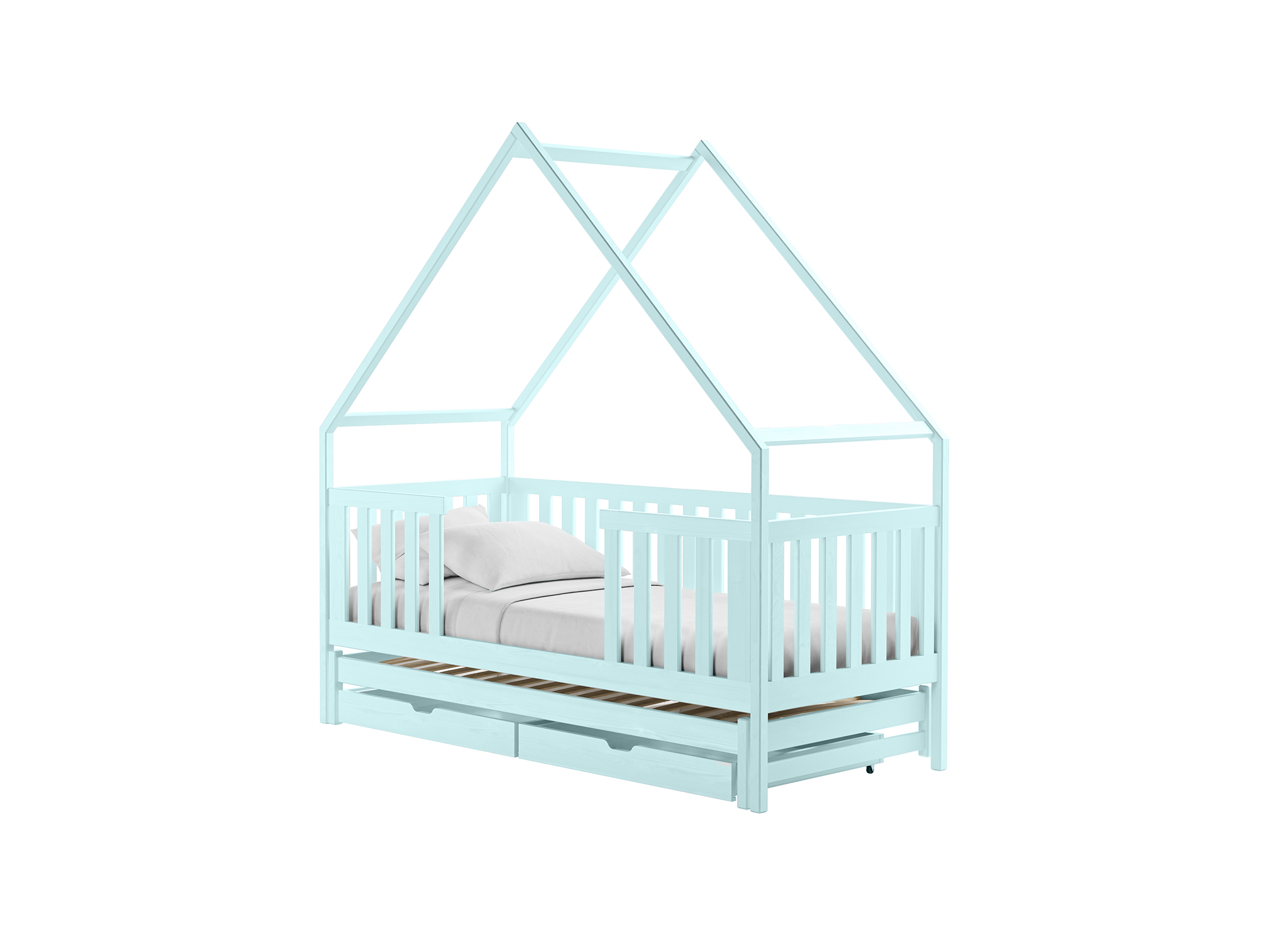 Łóżko domek MAGIC z pozoru wygląda jak wiele innych, jednak jego wyjątkowość tkwi w szczegółach. Łóżko piętrowe z drewna sosnowego wyposażone zostało w część wysuwaną, dzięki której można z niego stworzyć dwa oddzielne pokłady snu. Model łóżka MAGIC, jest niskim łóżkiem piętrowym, więc to doskonałe rozwiązanie dla dzieci, które dopiero uczą się spać samodzielnie. Nadmierna wysokość często wywołuje w nich lęk, dlatego warto postawić na nieco niższy model, szczególnie na początek. Łóżka z drewna sosnowego mają uniwersalny kolor, świetnie komponują się z pozostałymi elementami wyposażenia pokoju dziecięcego. Łóżko dziecięce ładnie prezentuje się w pokoju urządzonym w jasnych kolorach. Model łóżka MAGIC, wpisuje się w styl skandynawski, co stanowi odpowiedź na potrzeby rodziców preferujących prostotę. Łóżko domek MAGIC z wysuwaną częścią, to praktyczne rozwiązanie dla rodzeństwa, szczególnie przy małej różnicy wieku.