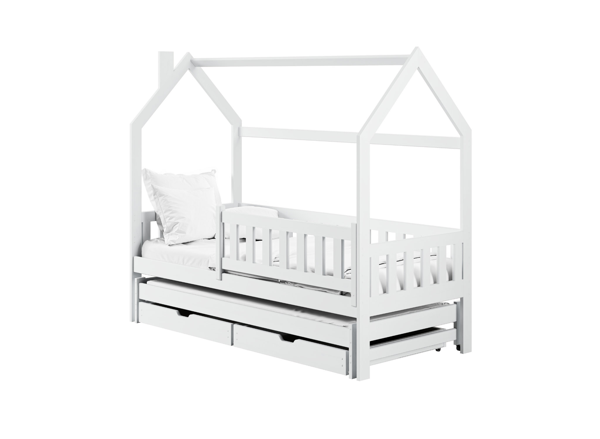 Które dziecko nie marzy o łóżku w kształcie domku? Za jego pomocą stworzysz bajkową scenerię w pokoju dziecięcym, której nie oprze się żaden maluszek. To jeszcze nic. Starannie dopracowane i skonstruowane z myślą o zdrowym śnie łóżko dziecięce domek MONKEY oferuje pełen komfort. Stworzone z surowców najwyższej jakości, jest niezwykle solidne i zapewnia ochronę Twoich dzieci podczas snu i zabawy. Łóżko dziecięce domek MONKEY posiada także drugie wysuwane miejsce do spania. To szansa na zapewnienie pięknych snów dla dwójki rodzeństwa!