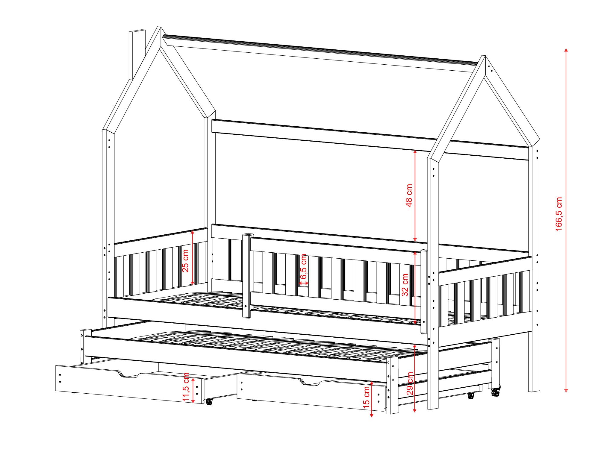 | Wysokość łóżka | 166,5 cm |