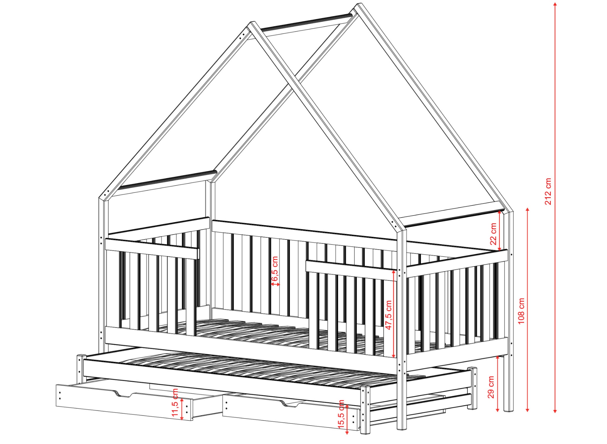 | Wysokość łóżka | 212 cm |