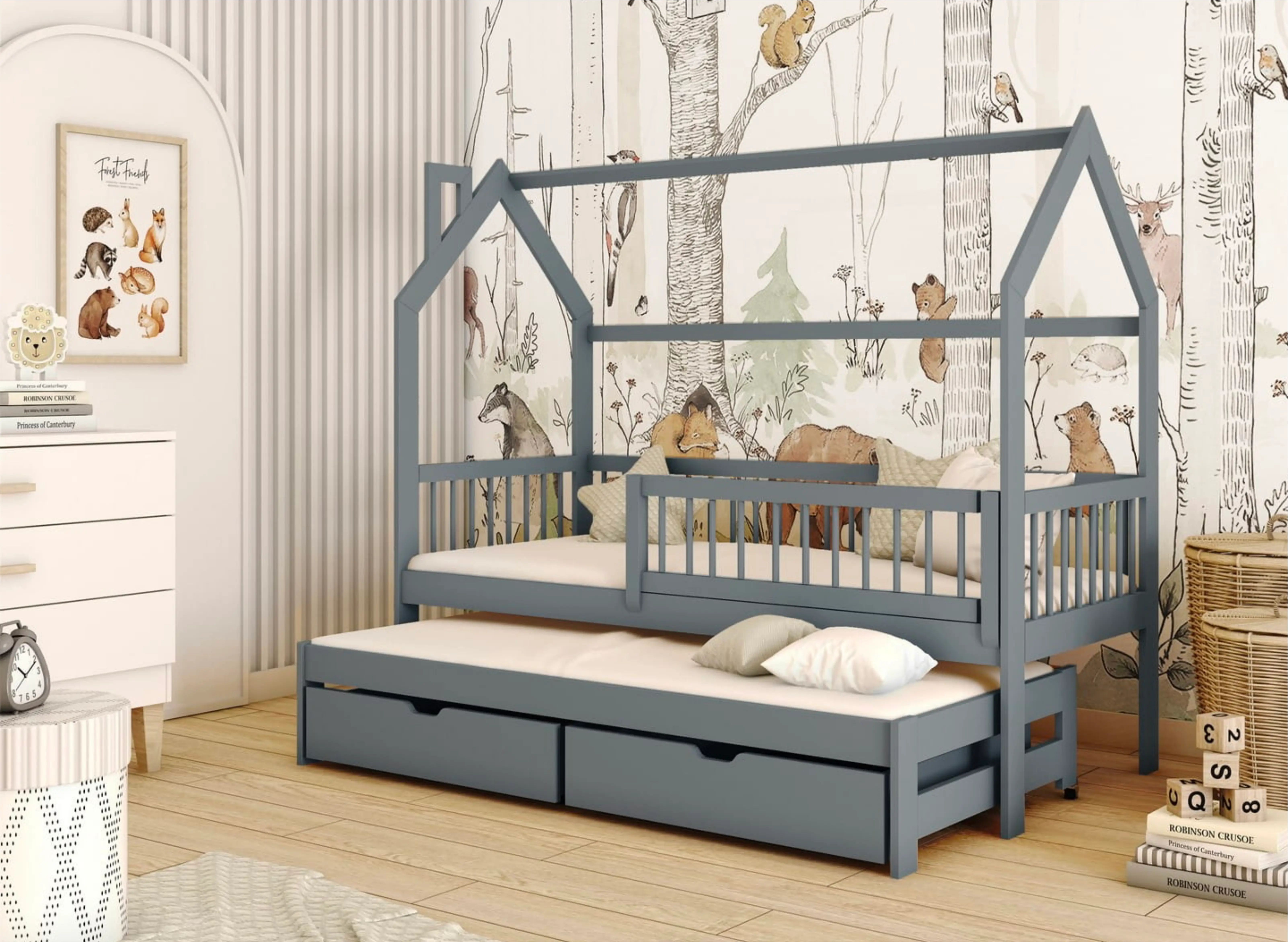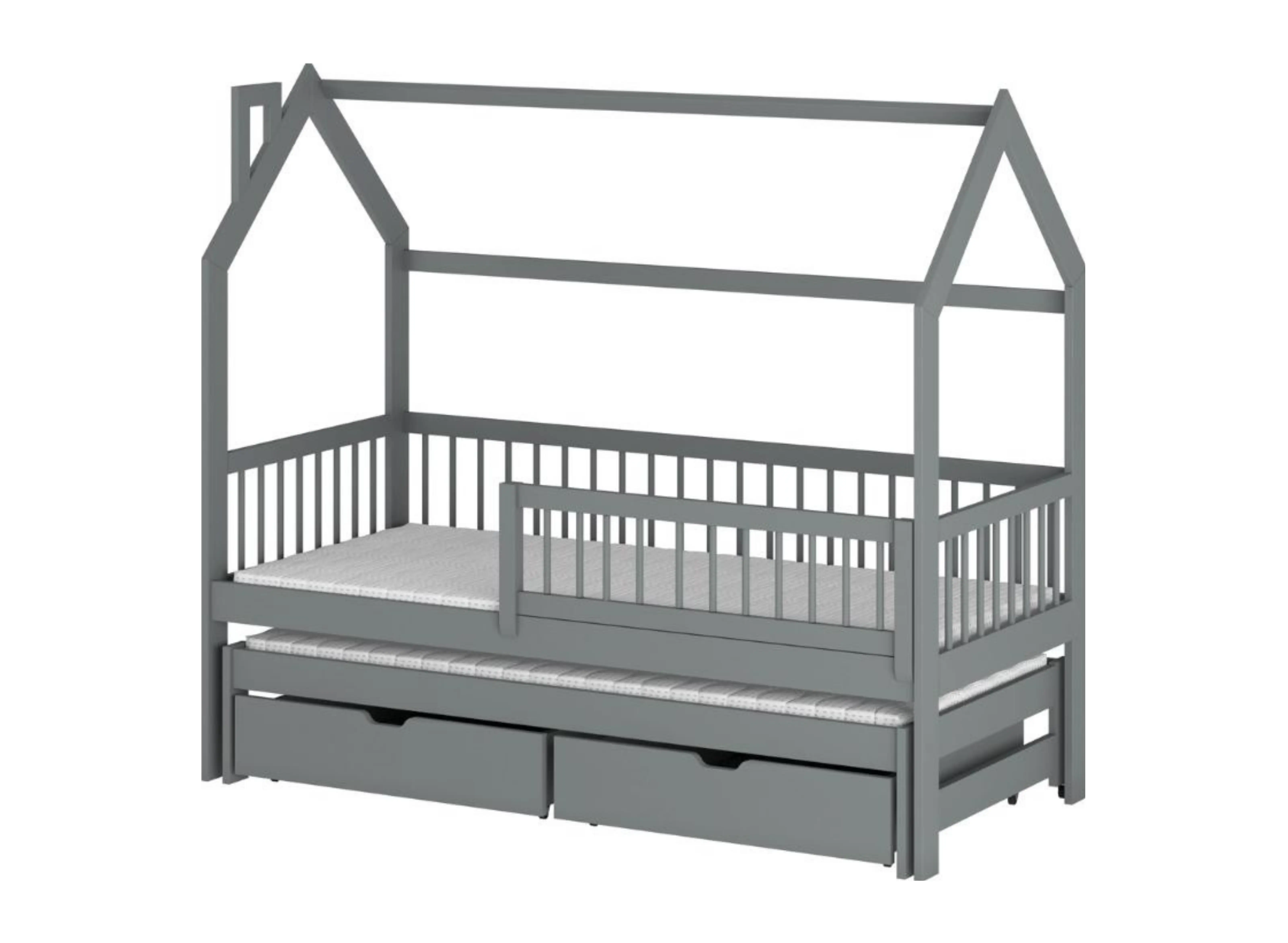 Grafitowe łóżko dziecięce domek PAPI 90x200 świetnie dopasujesz do każdej aranżacji