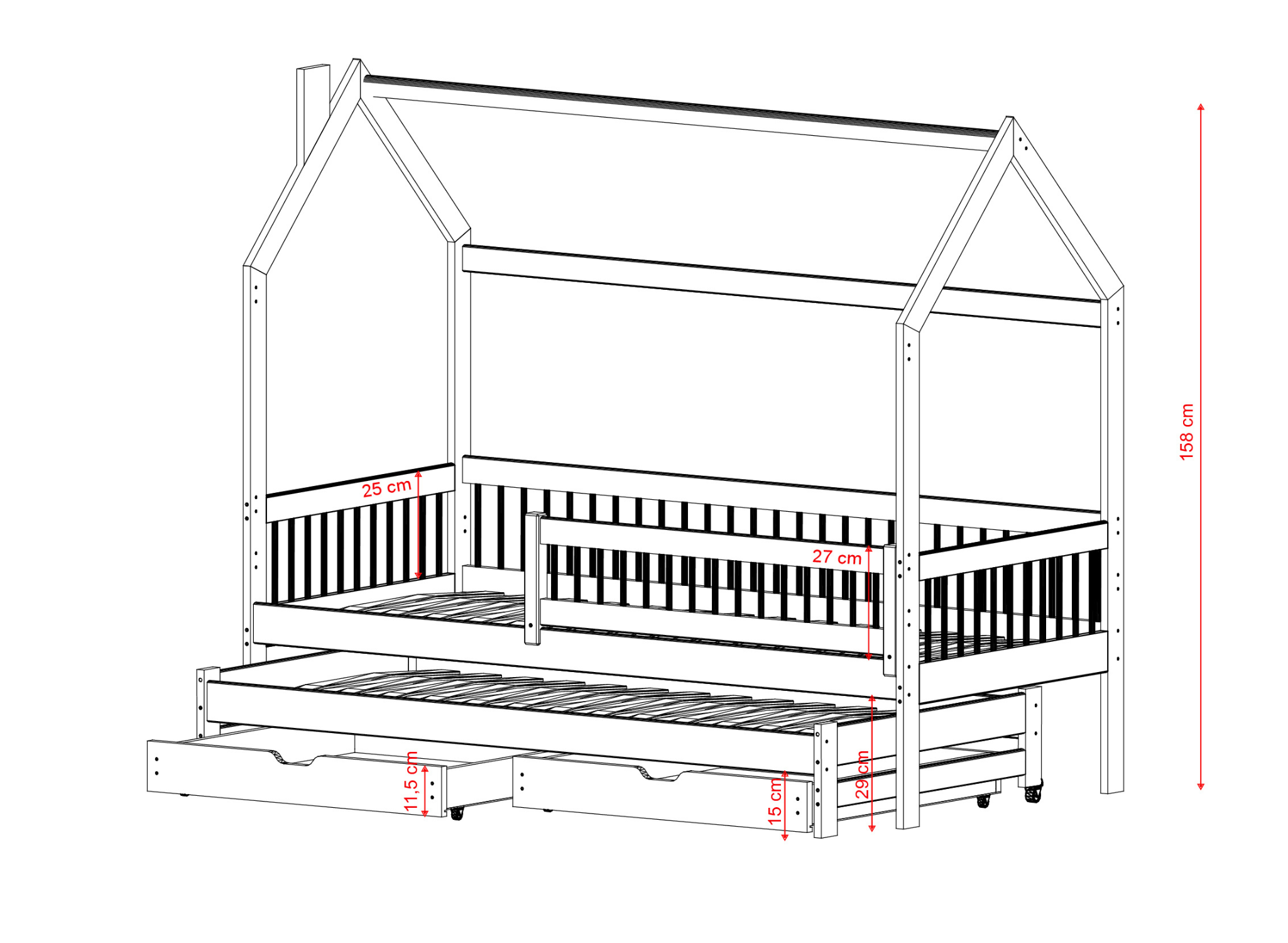 Mimo uroczego designu, łóżko dziecięce domek PAPI ma dość prostą konstrukcję, która dopasuje się do każdego stylu pokoju dziecięcego. To wielka zaleta. Nawet jeżeli w planach jest remont pokoju, możesz mieć pewność, że łóżko to wpasuje się idealnie w ramy każdej aranżacji. Wybierz łóżko dziecięce domek PAPI, a zobaczysz, że Twoje dziecko już nigdy nie będzie miało problemu z zasypianiem. Za jego pomocą stworzysz bajkową i niezwykle przytulną scenerię w pokoju dziecięcym. Istnieje wiele powodów ku temu, aby skusić się na łóżko dziecięce domek PAPI. To przede wszystkim spora funkcjonalność, którą zapewnia. Przede wszystkim łóżko posiada wysuwane spanie, dzięki czemu w razie potrzeby rodzic może czuwać obok maluszka. To także drugie, komfortowe miejsce do spania dla rodzeństwa. Takie kompaktowe rozwiązanie pozwala zaoszczędzić sporo miejsca. To jednak nie wszystko. Łóżko dziecięce domek PAPI może posiadać także dwie, duże i pojemne szuflady, które mieszczą się pod stelażem. Dzięki nim przechowasz różne drobiazgi, dzięki czemu w końcu zapanuje porządek.