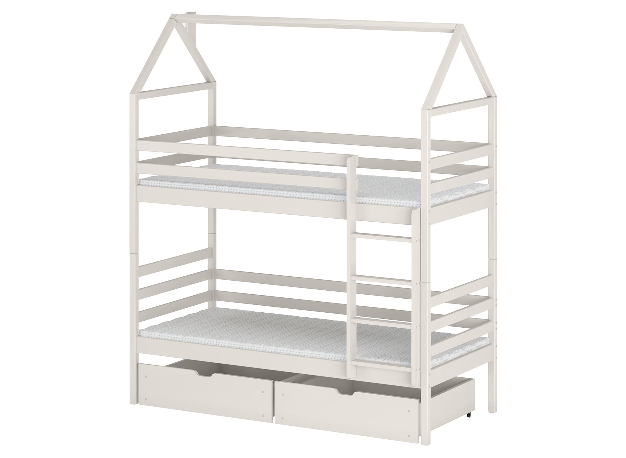 Łóżko dziecięce domek ALEX to ziszczenie snów każdego maluszka. To dokładnie przemyślana i starannie wykonana konstrukcja, która pobudza kreatywność i działa na zmysły. Duża wytrzymałość oraz stabilność sprawia, że jest to mebel dla dzieci, który będzie bezproblemowo użytkowany przez wiele lat. Gwarantujemy również, że każda pociecha będzie ucieszona z jego posiadania każdego dnia. W Lano Meble przykładamy największą wagę nie tylko do strony wizualnej, ale zwłaszcza funkcjonalności łóżek dziecięcych. W związku z tym łóżko piętrowe domek ALEX zapewnia nie tylko wygodny sen, ale i bezpieczne przechowywanie różnych drobiazgów. Pod łóżkiem dziecięcym ALEX znajdują się praktyczne szuflady, które umożliwiają schowanie pościeli, ubranek oraz licznych zabawek. Już nie będziesz mieć problemu z walającymi się przedmiotami po pokoju. Teraz zawsze będzie na nie miejsce.