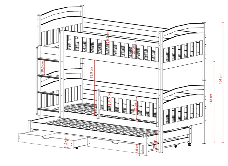 | Rodzaj | łóżko piętrowe z dostawką |