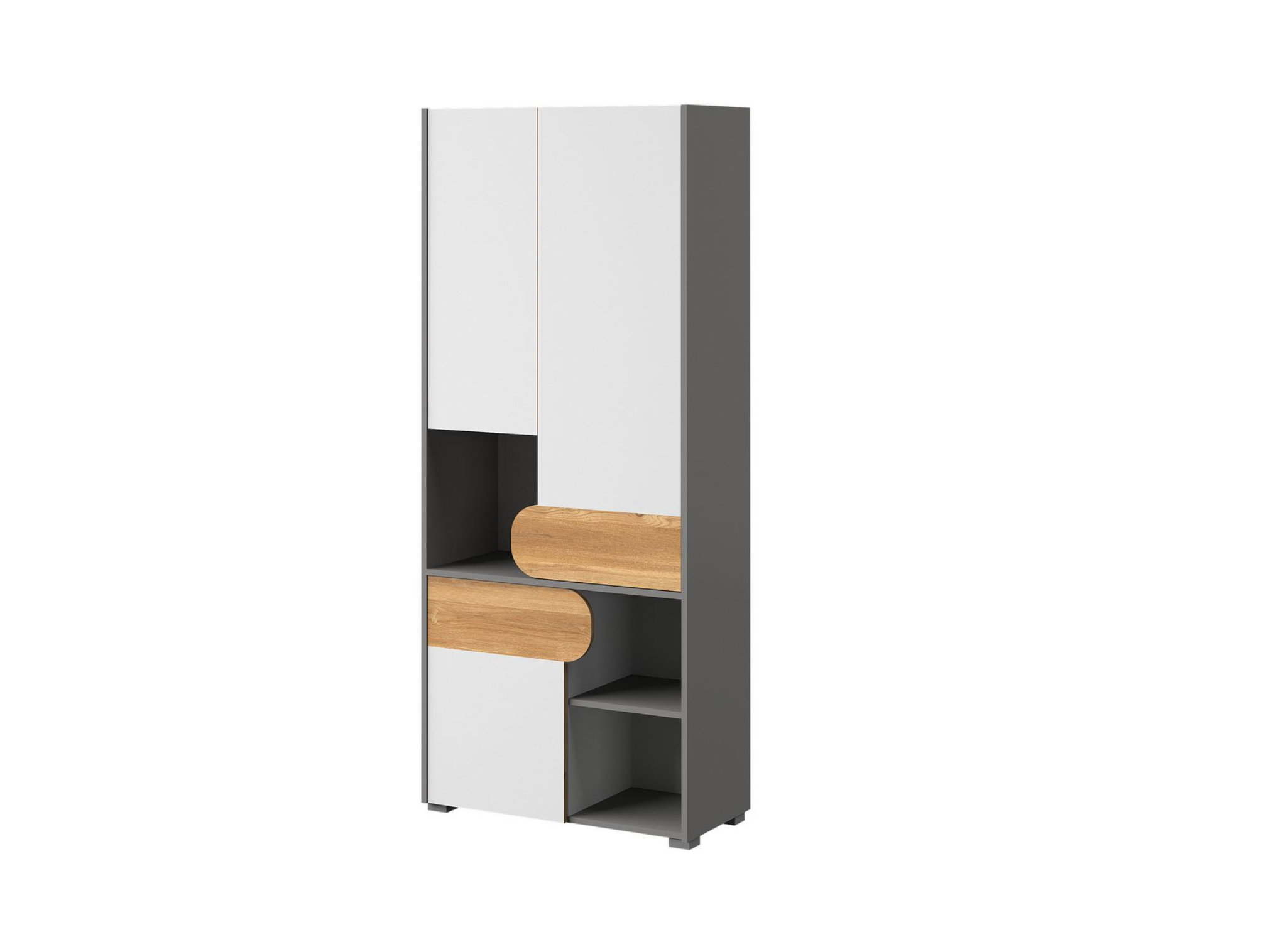 Bieliźniarka CARINI CA2 to synonim praktyczności. Wyposażono ją w aż siedem półek, które ułatwiają segregację ubrań, bielizny czy innych akcesoriów. Ta szafa z półkami młodzieżowa pomaga utrzymać porządek, co jest kluczowe w pokoju każdego nastolatka. Zaokrąglone krawędzie frontów zwiększają bezpieczeństwo użytkowania, a eleganckie, wysunięte części frontów zastępują uchwyty, podkreślając nowoczesny design.