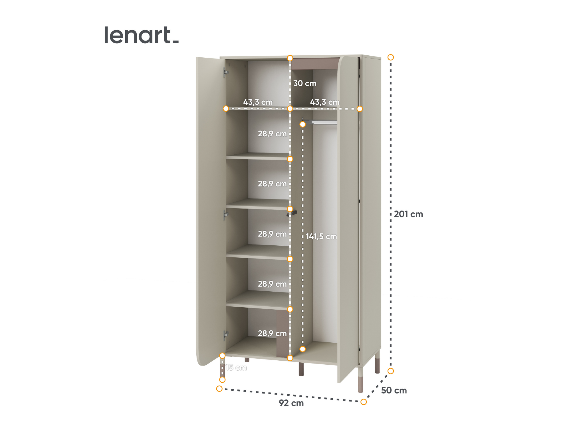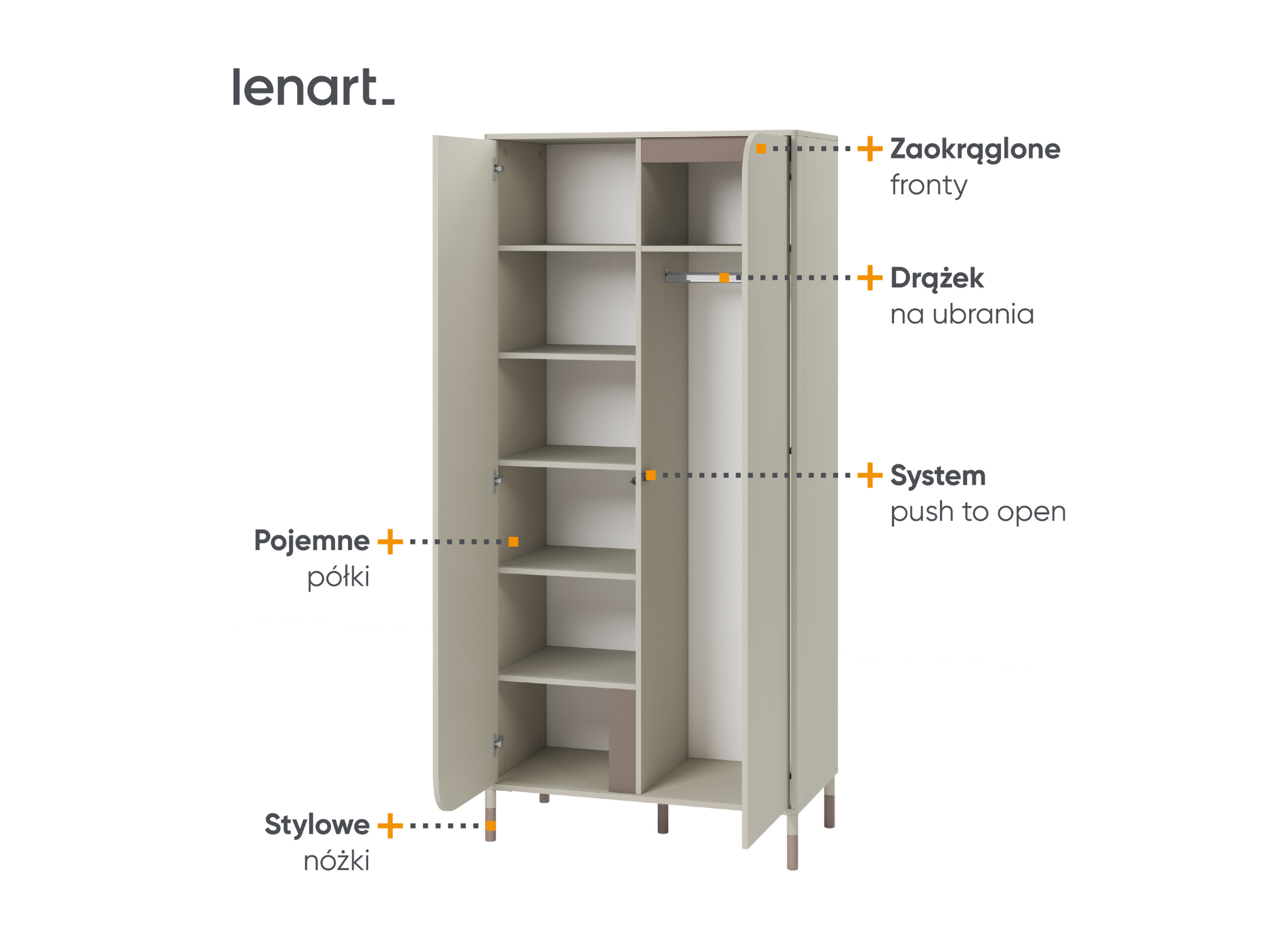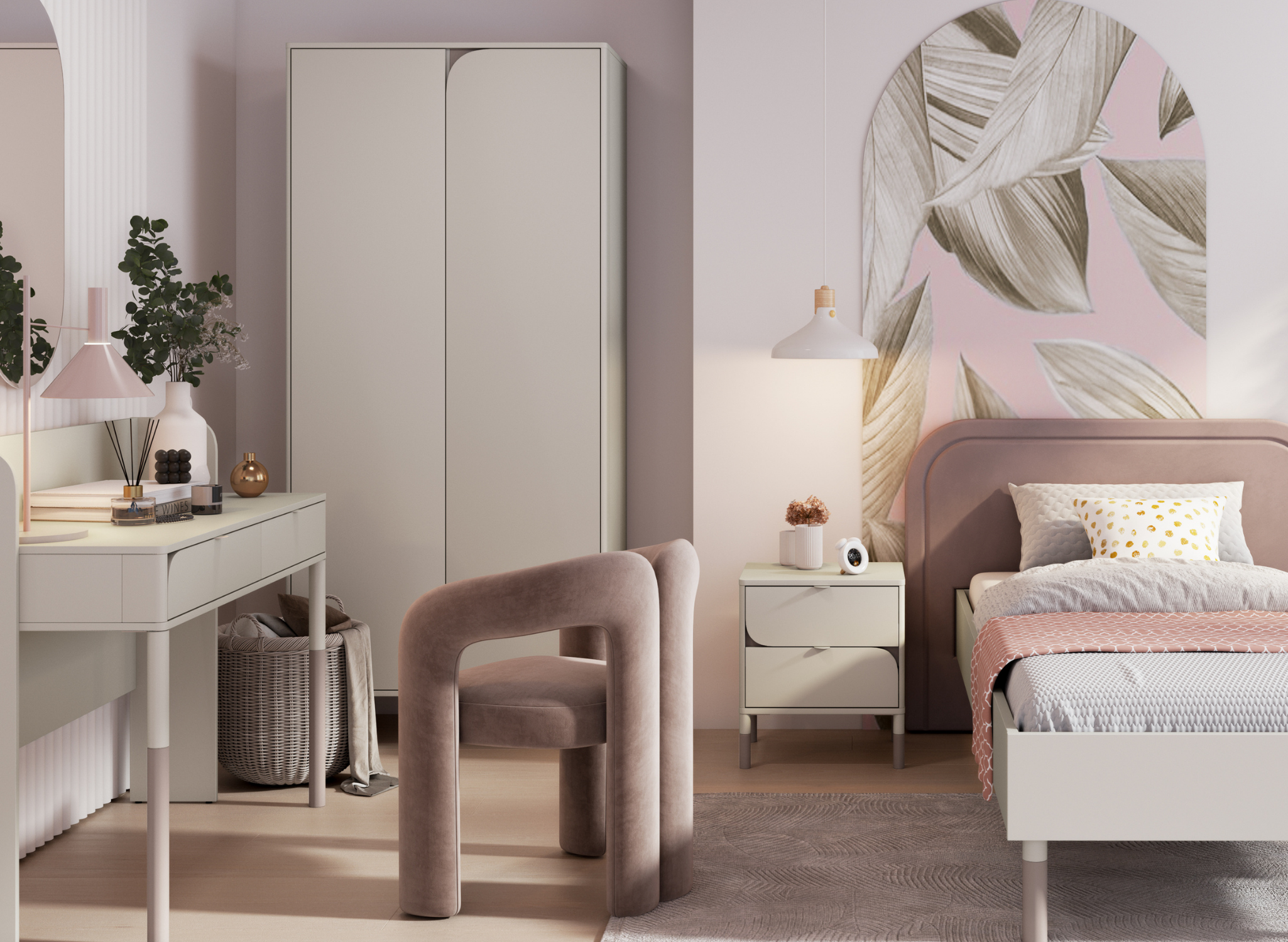 Kolekcja Harmony to seria mebli dziecięco-młodzieżowych, stworzona z myślą o dziewczynkach, cechująca się delikatnością, funkcjonalnością i elegancją. Kolorystyka mebli w tonacji kaszmiru i truflowego nadaje im subtelny, przyjemny wygląd, idealny do stworzenia przytulnego i spokojnego otoczenia w pokoju dziecka. Cała kolekcja Harmony to harmonijne połączenie funkcjonalności, estetyki i bezpieczeństwa, które zapewniają idealne warunki do rozwoju i wypoczynku dla każdej dziewczynki. Szafa z kolekcji Harmony to praktyczne rozwiązanie do przechowywania ubrań, akcesoriów i innych rzeczy. Wyróżnia się estetycznym designem oraz funkcjonalnością. Dostępne są różne rozmiary i konfiguracje szaf, aby dostosować się do indywidualnych potrzeb i wymiarów pomieszczenia.