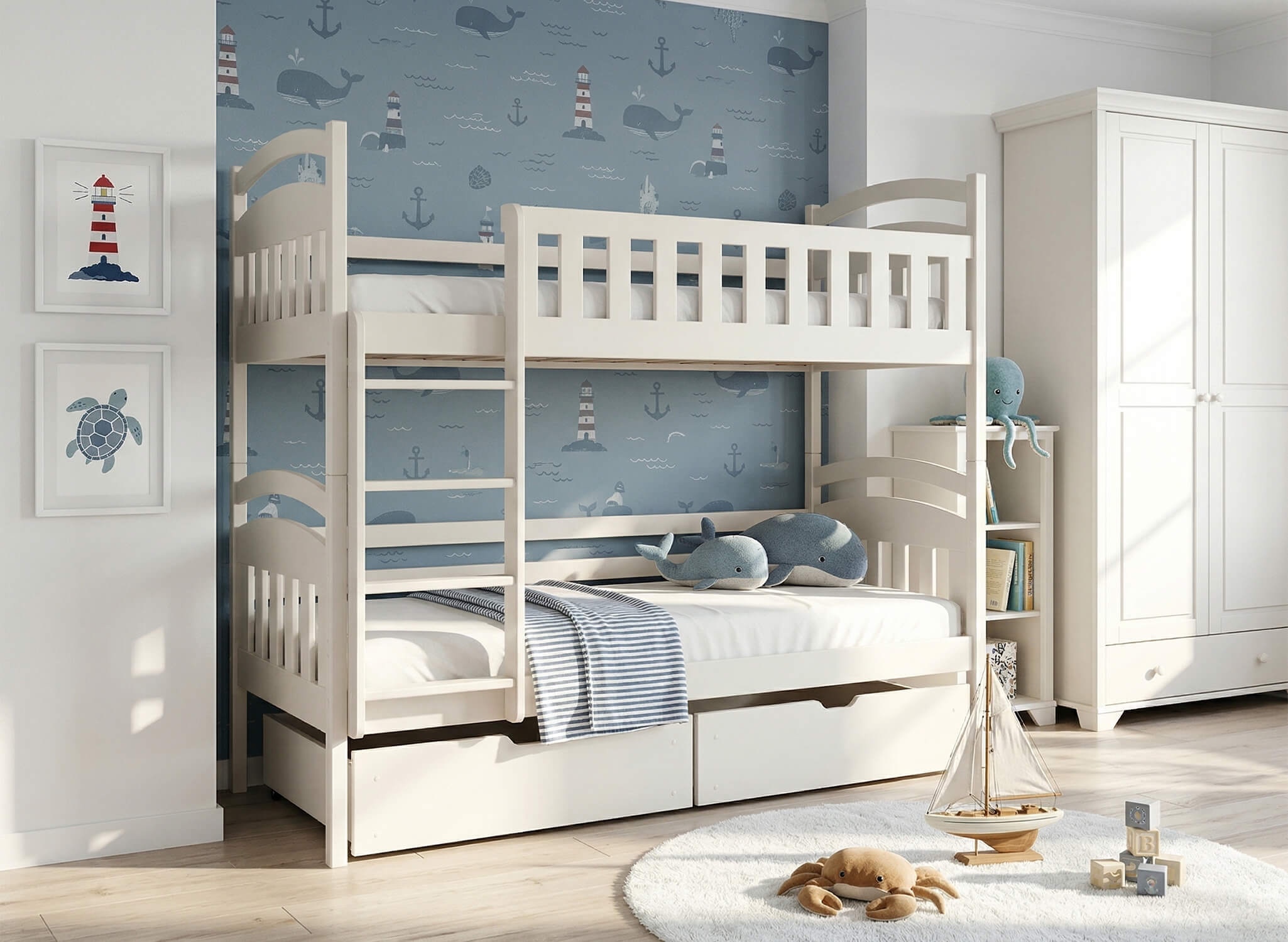 Oszczędzaj miejsce z szufladami bawełnianego łóżka piętrowego IGNAŚ 90x190