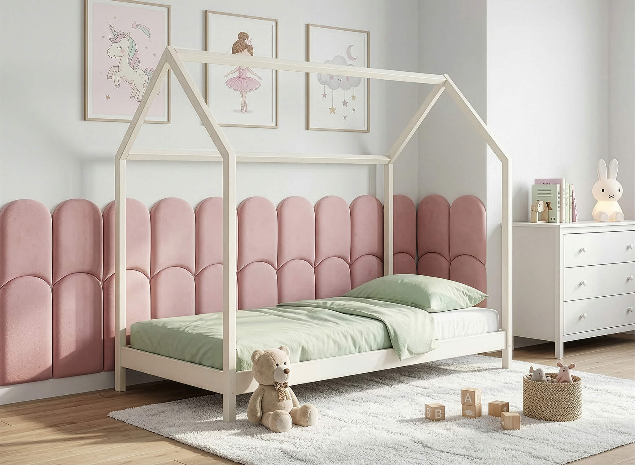 Odkryj minimalistyczne bawełniane łóżko w kształcie domku LUCKY