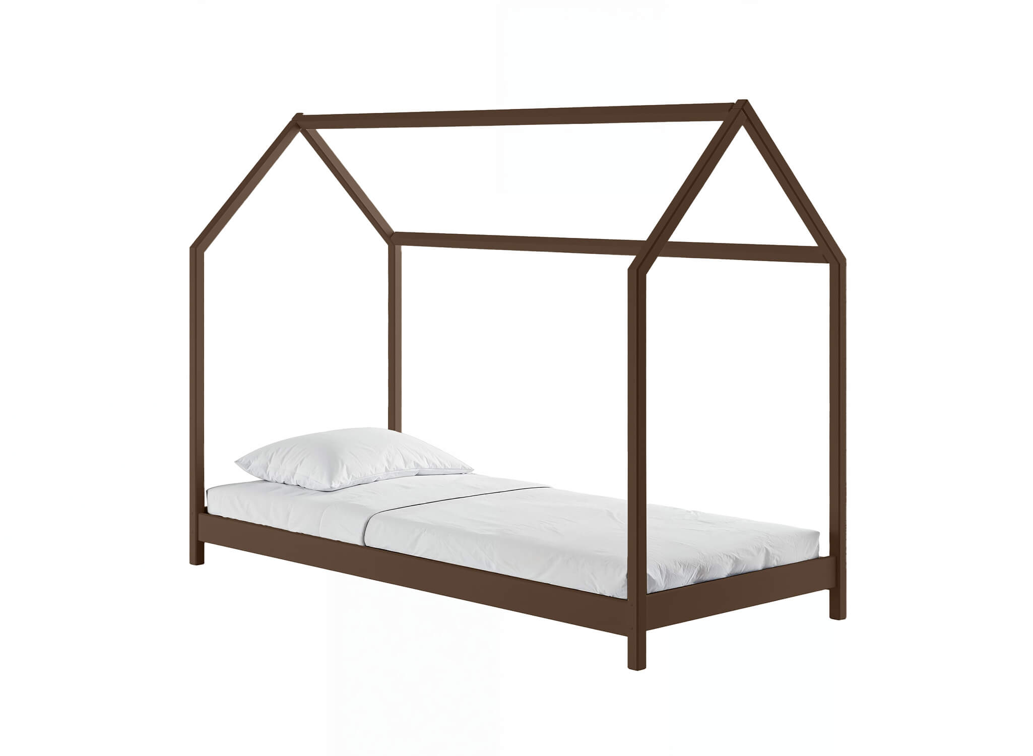 Odkryj minimalistyczne łóżko w kształcie domku LUCKY ciemna czekolada