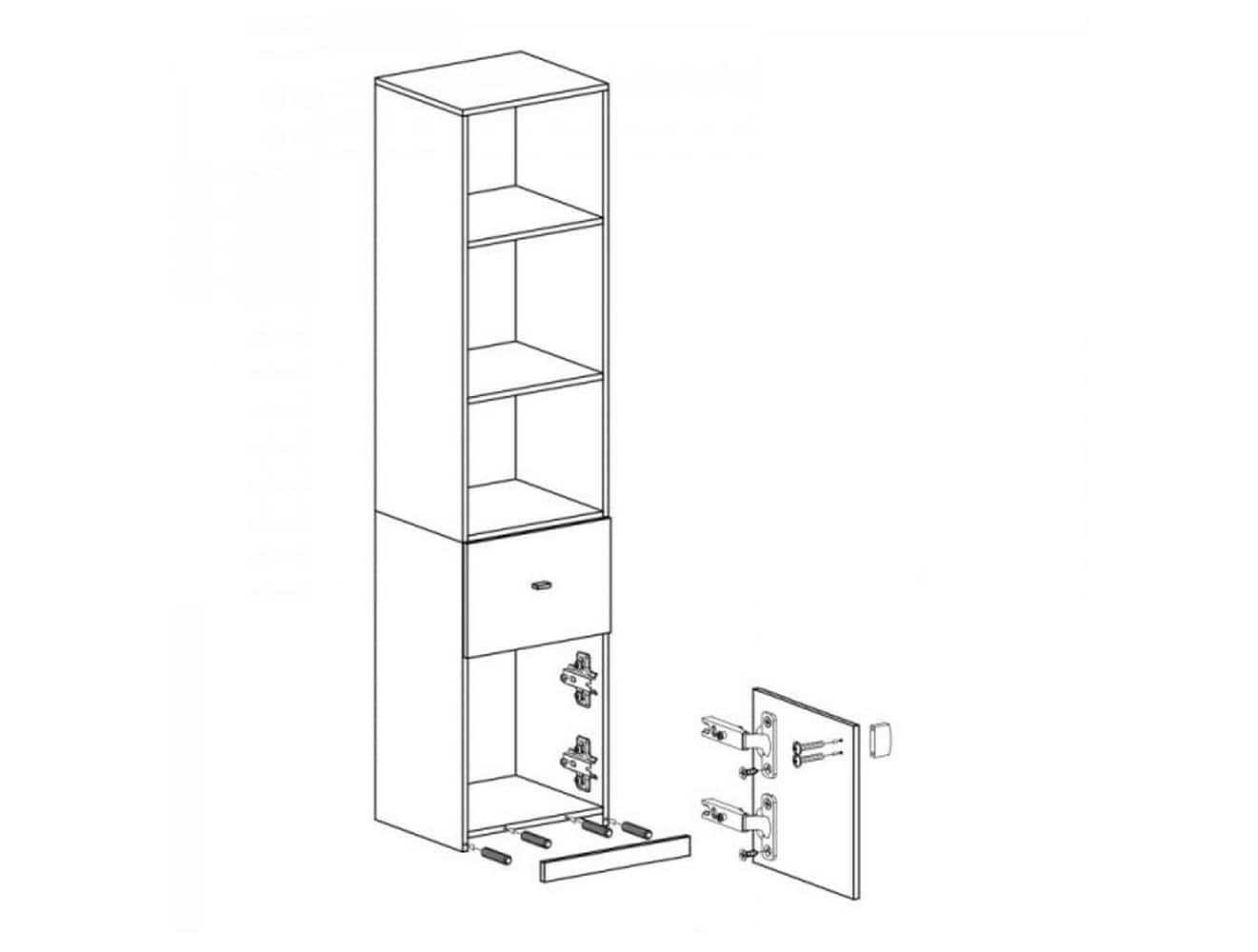 Wyposażony w część jednodrzwiową, jedną szufladę oraz trzy otwarte wnęki.