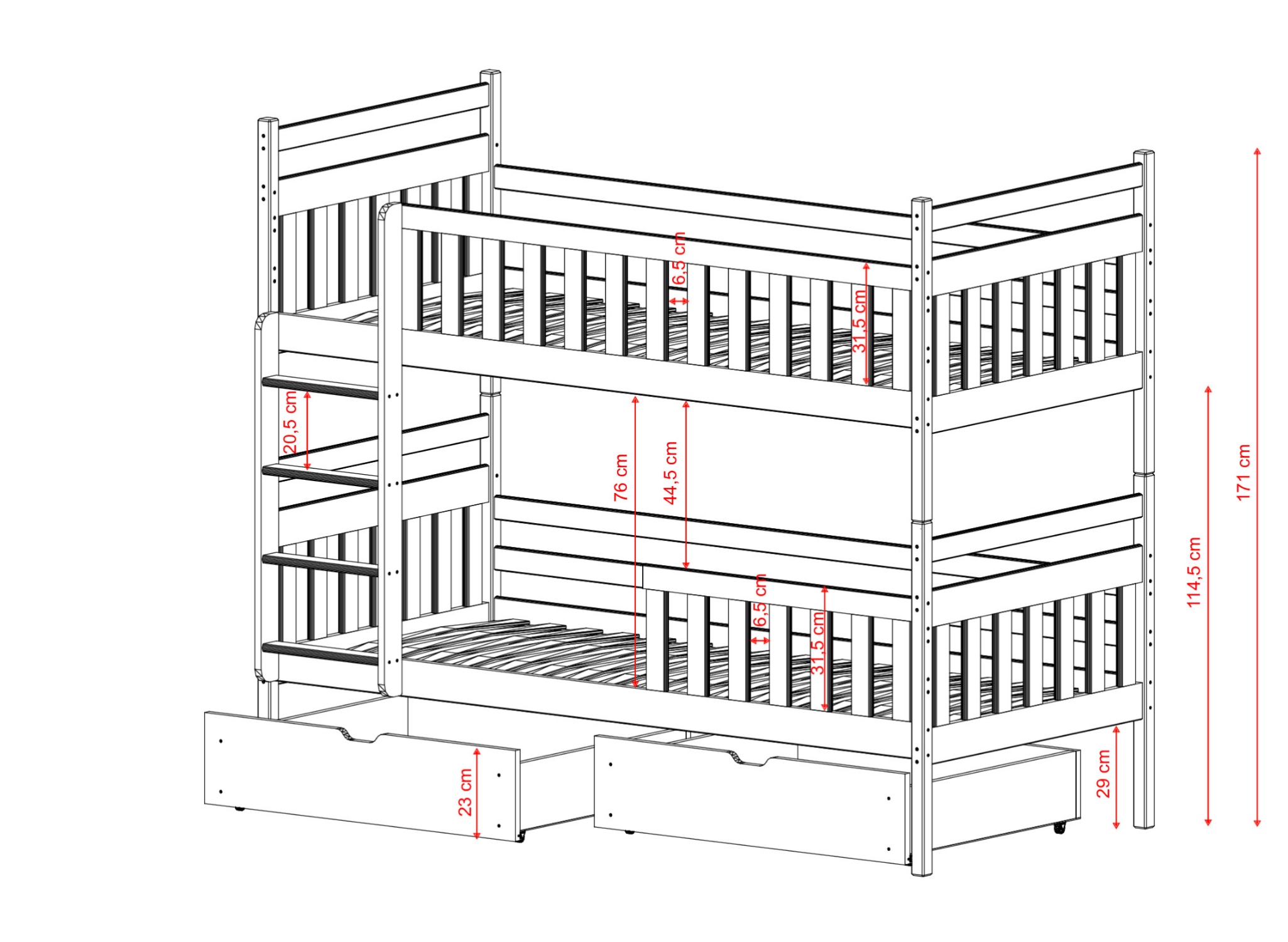 Dodatkowy prześwit w łóżkach piętrowych Lano - więcej przestrzeni dla swobody i bezpieczeństwa Twojego dziecka