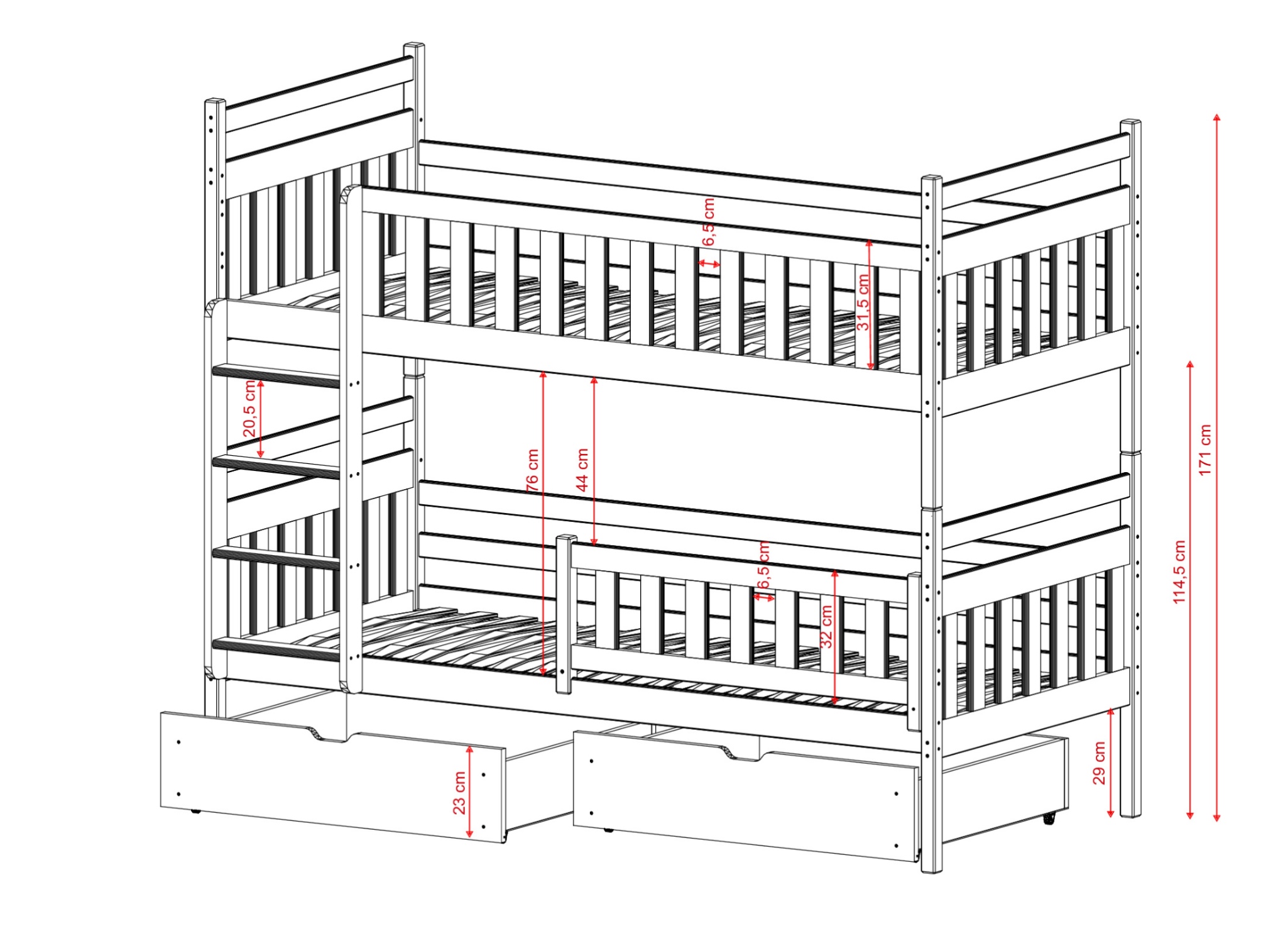 Funkcjonalne i praktyczne – bawełniane piętrowe łóżko dziecięce MONIKA 90x200