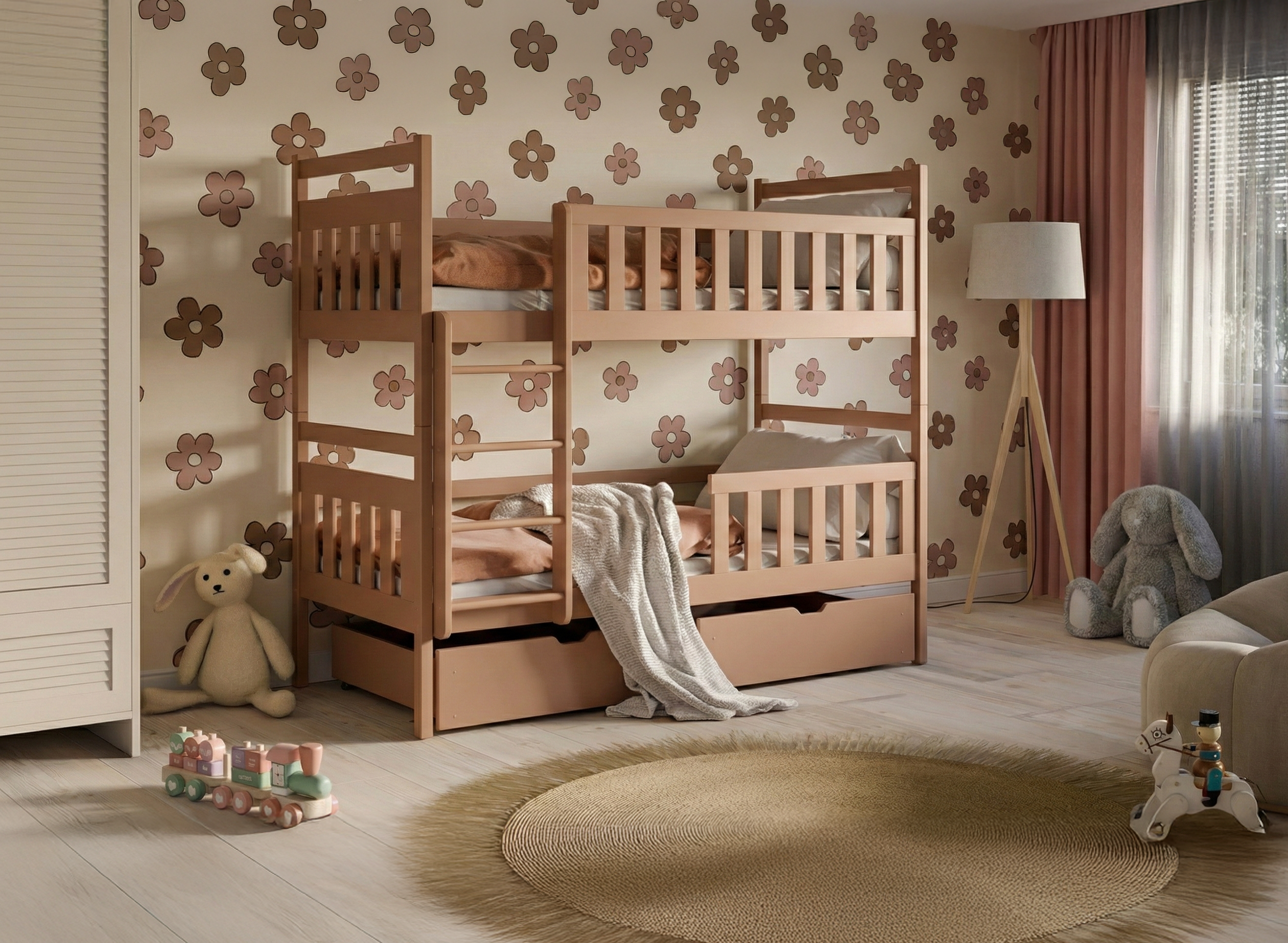 Design, który pokochali rodzice i maluchy – cynamonowe piętrowe łóżko MONIKA