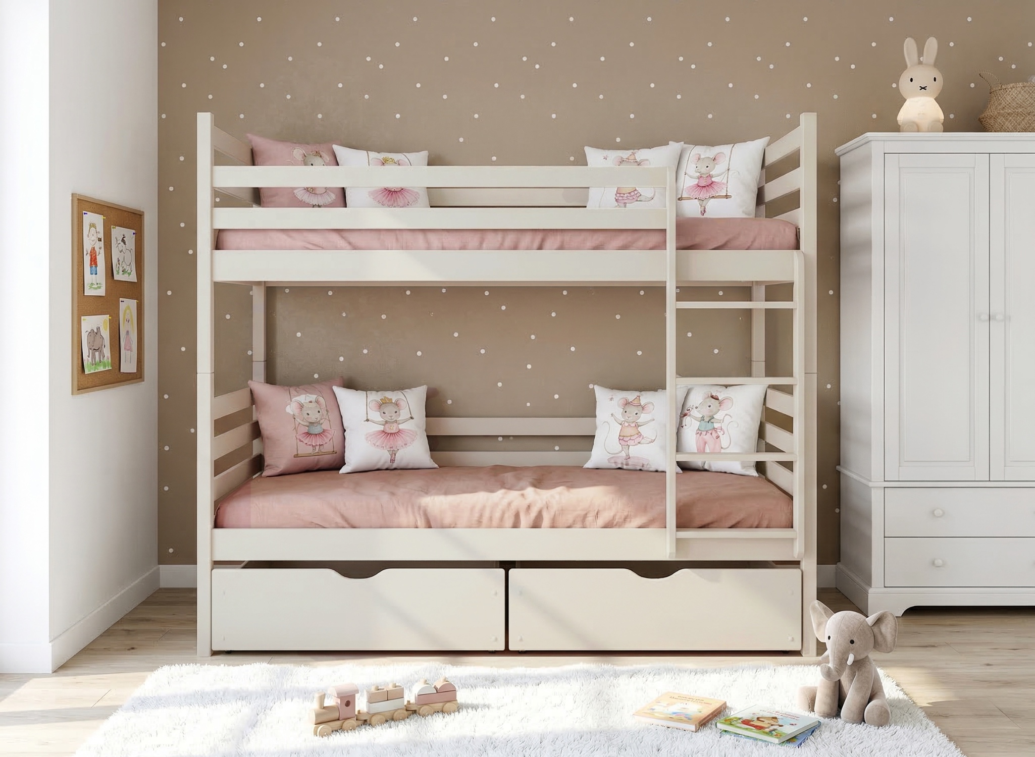 Świat snu, zabawy i bajek – bajkowe Bawełniane łóżko piętrowe NEMO 90x180
