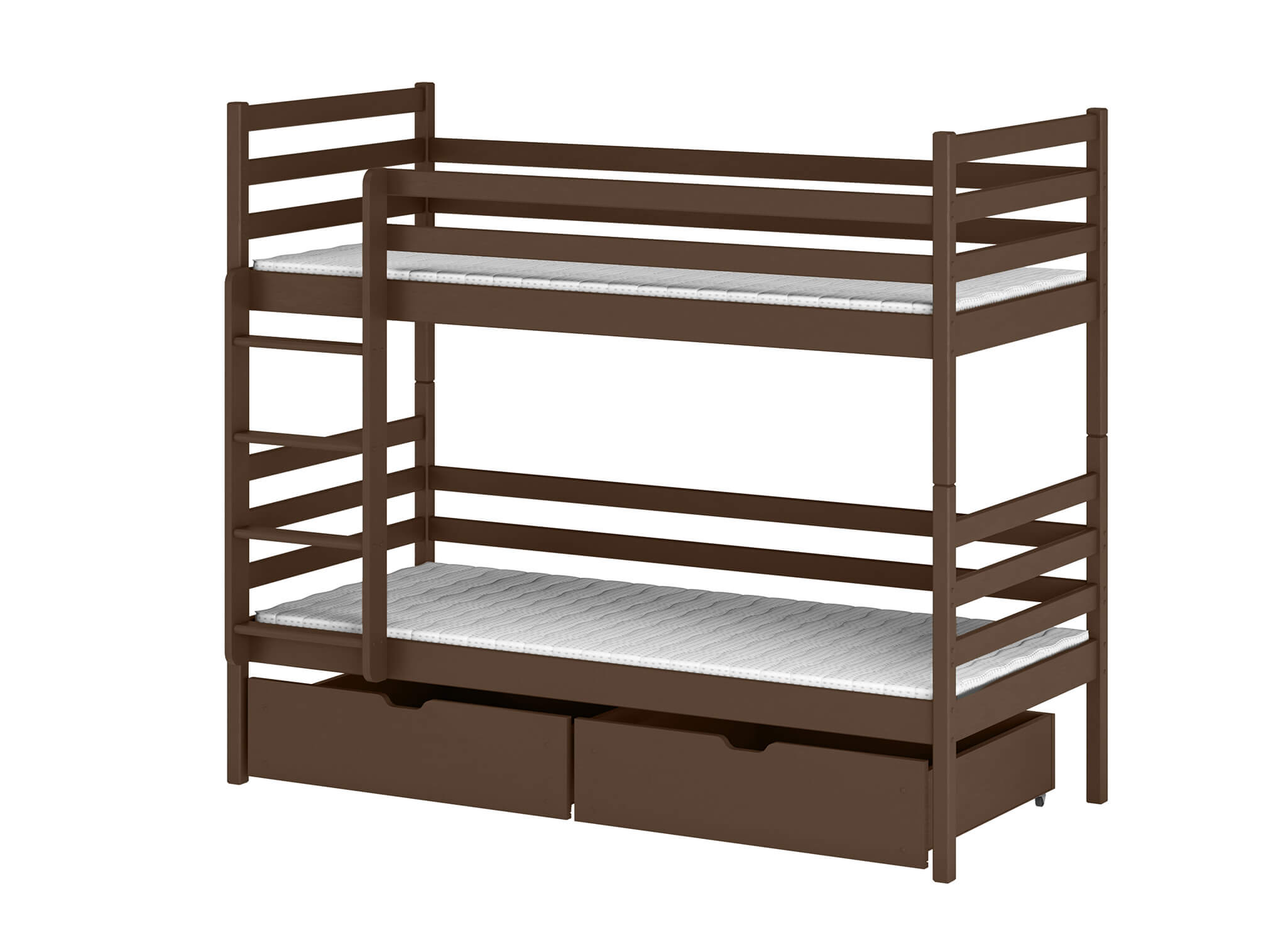 Stylowe łóżko piętrowe w kolorze ciemnej czekolady NEMO z drewna sosnowego