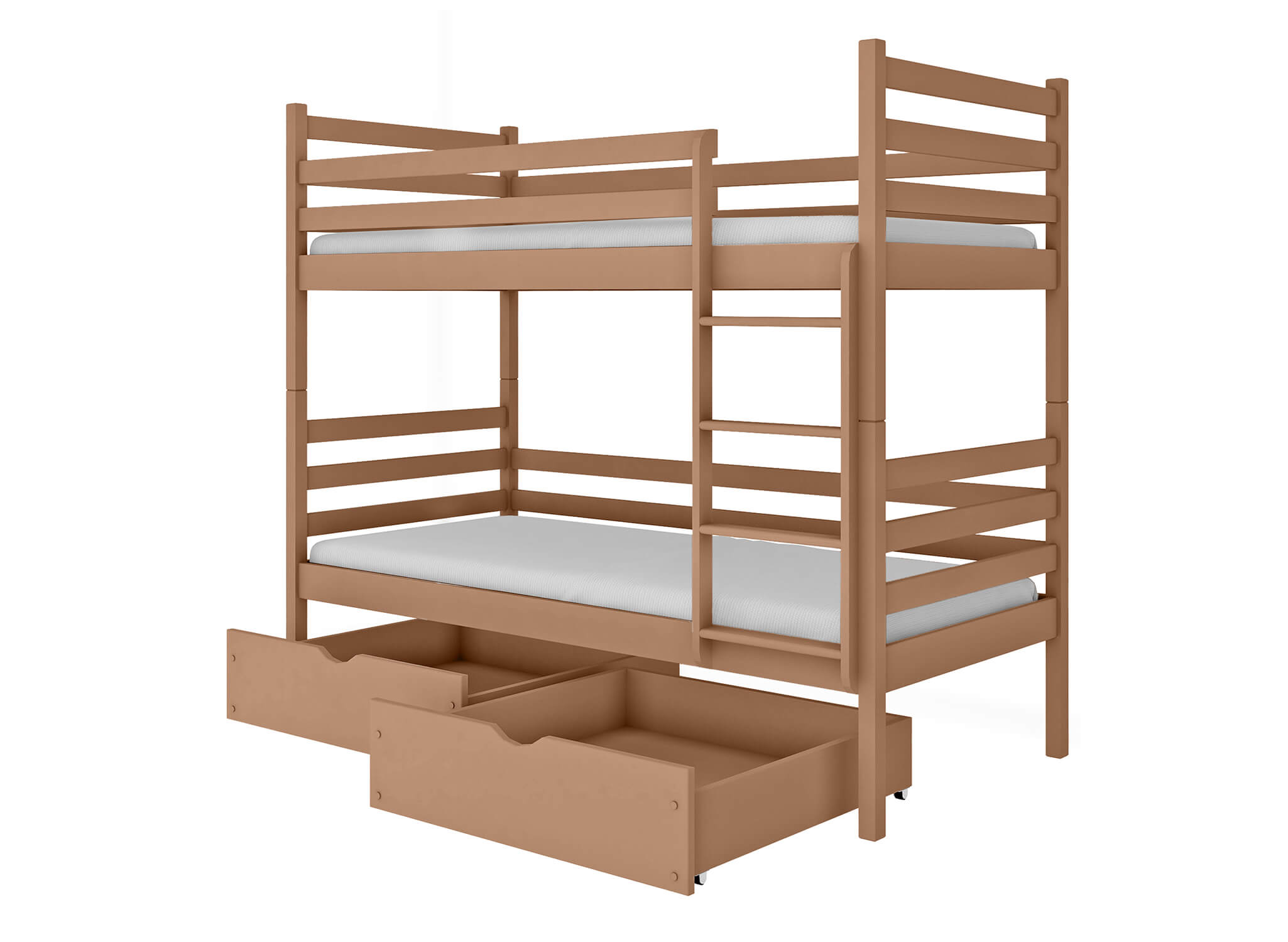 Dziecięcy sen na cynamonowym łóżku piętrowym NEMO 90x200 wzbogacony o funkcjonalne opcje personalizacji