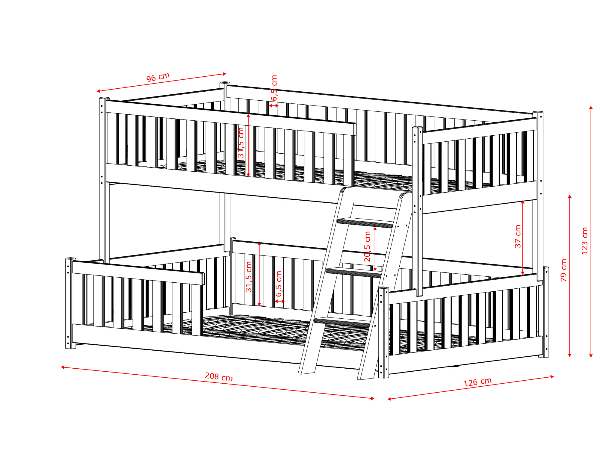 ⮕ Wygoda dla rodzeństwa w różnym wieku: Dolna część to bezpieczna strefa dla młodszego dziecka, podczas gdy góra to królestwo starszaka.