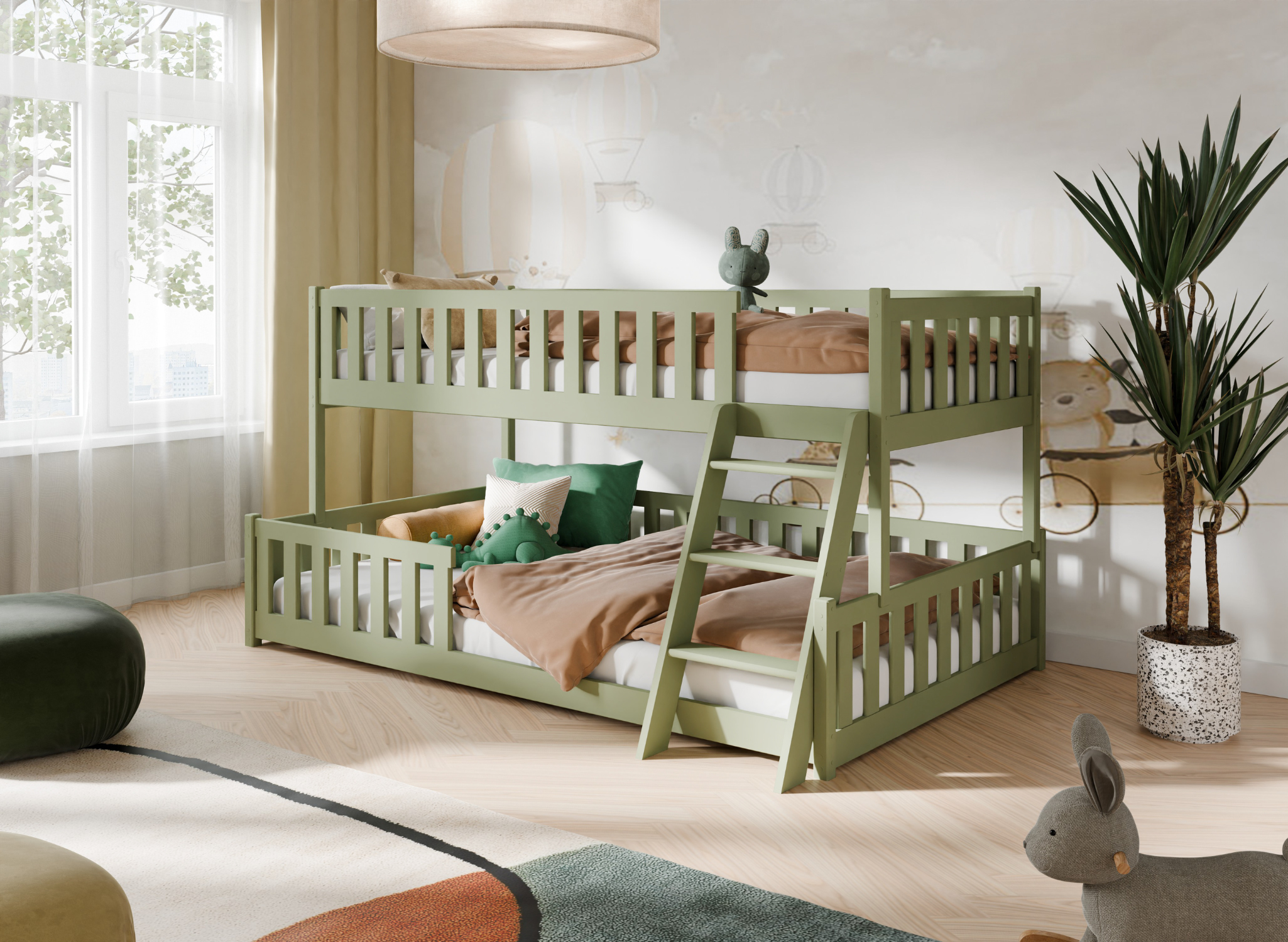 Bezpieczeństwo w duchu montessori – oliwkowe łóżko piętrowe NICE od Lano Meble