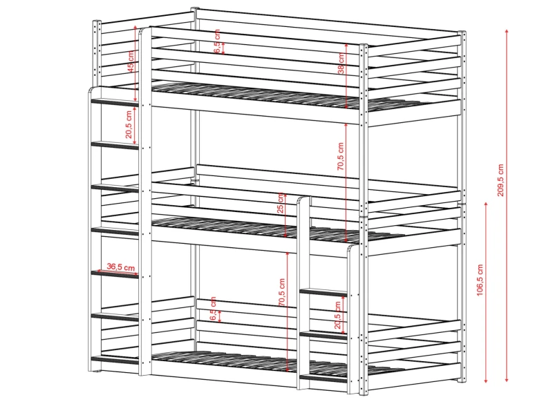 | Rodzaj łóżka | Łóżka trzyosobowe piętrowe |