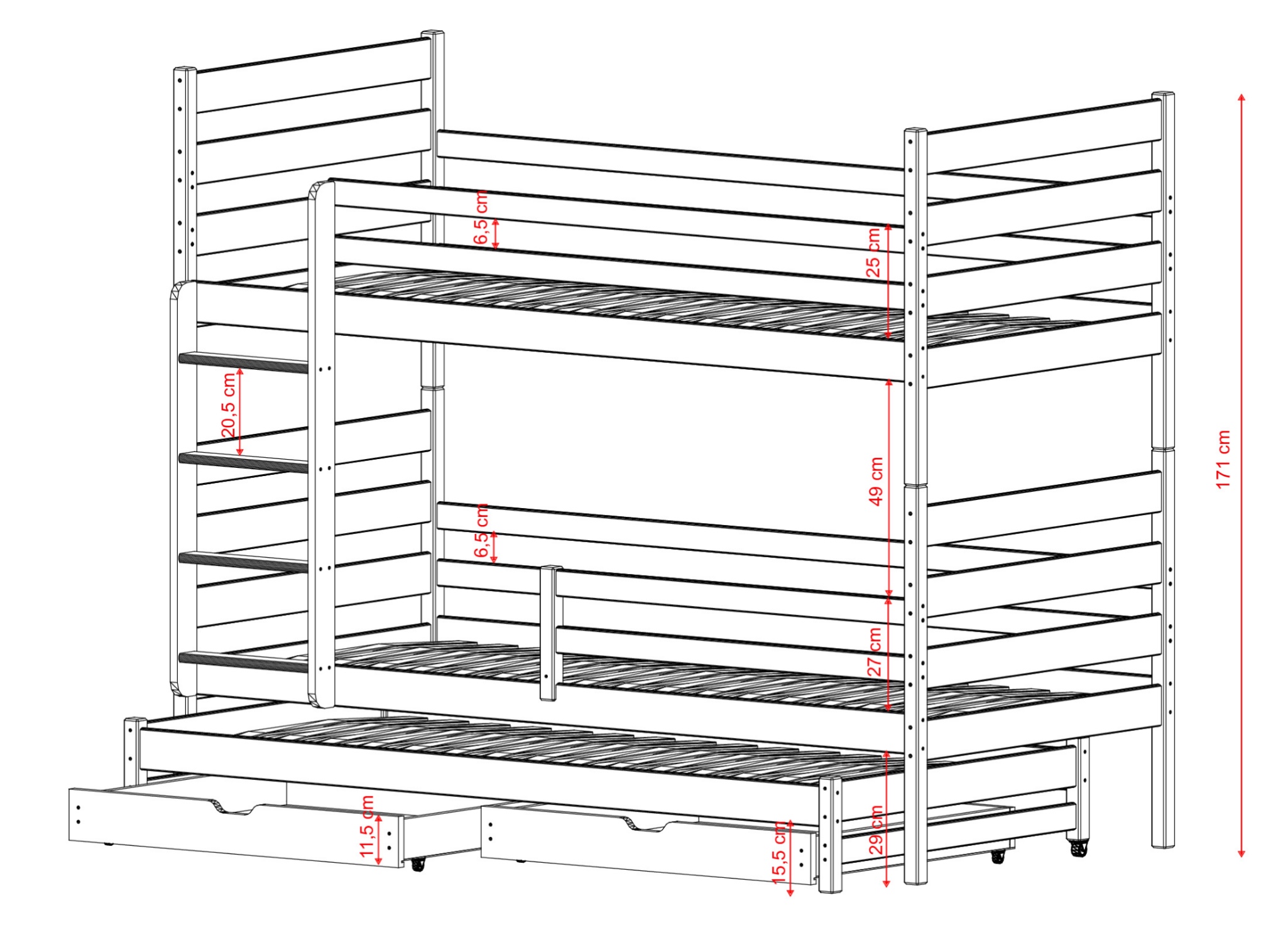 | Wysokość łóżka | 171 cm |