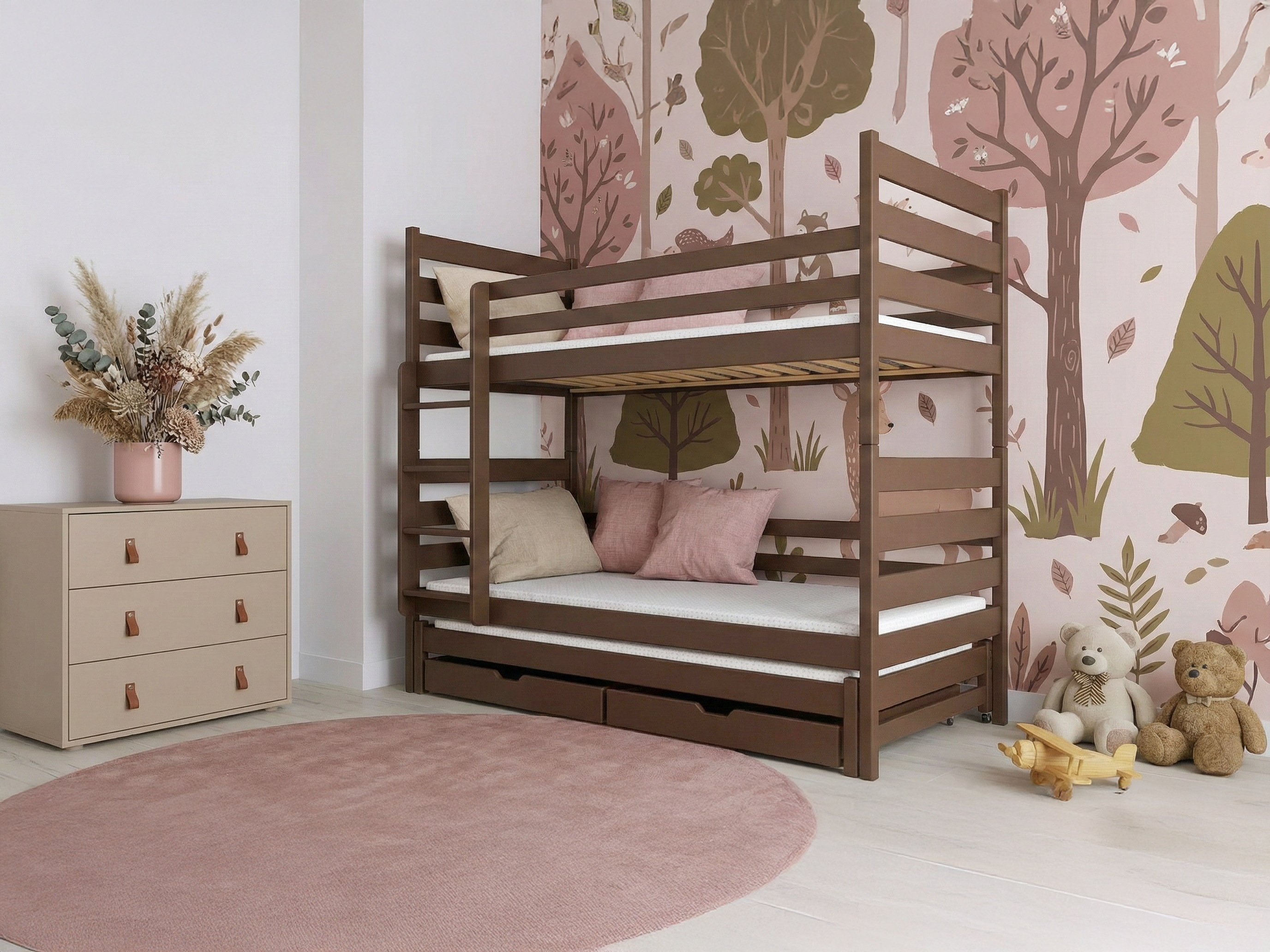 Łóżko piętrowe TOMI ciemna czekolada – stworzone z myślą o spokojnych nocach najmłodszych