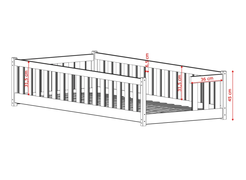 Kluczowym elementem jest tutaj ergonomiczne wejście. Przerwa w barierce jest na tyle szeroka, by dziecko mogło swobodnie wejść do środka (nawet tyłem, co jest naturalnym i bezpiecznym odruchem maluchów), a jednocześnie na tyle wąska, by podczas snu dziecko nie wypadło przypadkowo z łóżka. To mała zmiana konstrukcyjna, która daje ogromny spokój rodzicom.